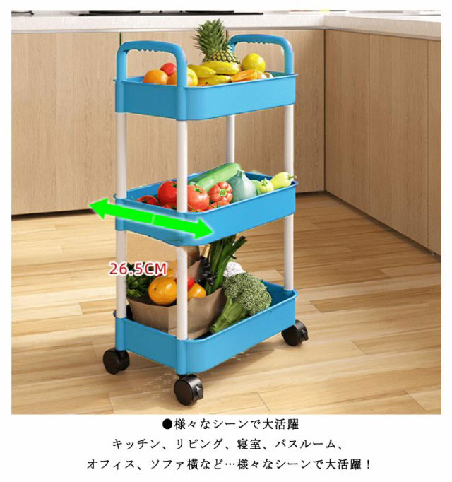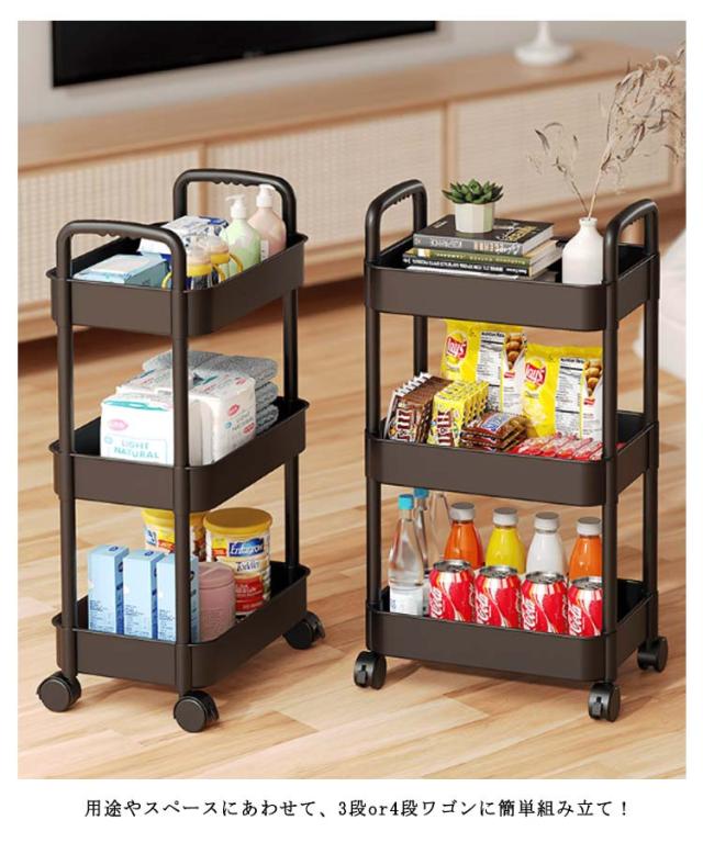 | 女性1人でも簡単に組み立てられるキッチンワゴン! ●収納力抜群 カゴ間高さは約28cmです。ペットボトルや本など様々物も収納できます。 ●高品質素材 安定性・耐久性も抜群!たくさん収納しても、ご安心してお使いいただけます。 ●キャスター付き 360度自由に回転することもでき、キッチンからリビングヘ、リビングから寝室へ自由自在。 ●簡単組み立て 用途やスペースにあわせて、3段or4段ワゴンに簡単組み立て! ●通気性良い 底板はメッシュ仕様で、水/ホコリがたまりにくい!通気性も良くて、野菜やタオルの収納にも合う! ●様々なシーンで大活躍 キッチン、リビング、寝室、バスルーム、オフィス、ソファ横など…様々なシーンで大活躍! ●落下防止 高さは約6cmなので、物が落下にくいです。 | |