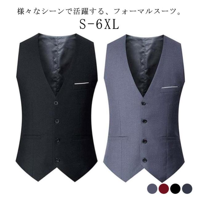 ベスト メンズ フォーマル ジレ チョッキ スーツ 大きいサイズ 大人 スリム Vネック フィット 胸ポケット付き 上品 おしゃれ ビジネス カジュアル 結婚式 紳士 無地 4色 尾錠付き 春夏秋冬 送料無料