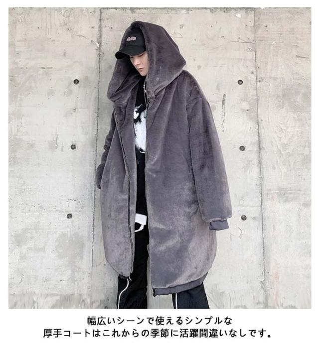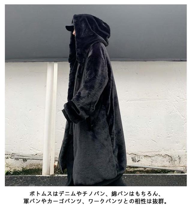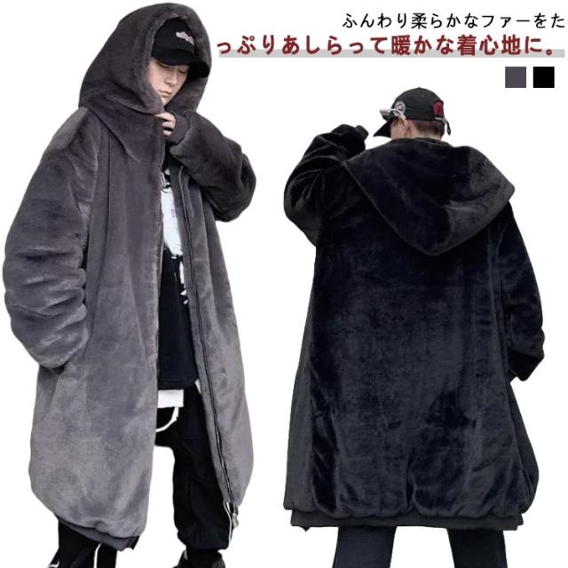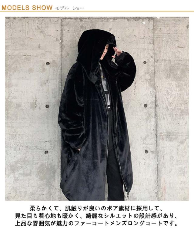 ボアコート メンズ ファー ロングコート フェイクファー コート フード付き 毛皮コート ファーコート ゆったり 大きいサイズ 韓国ファッション ストリート 暖かい 厚手 防寒 あったか 秋冬 ボアジャケット もこもこ