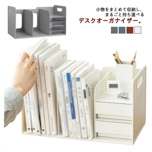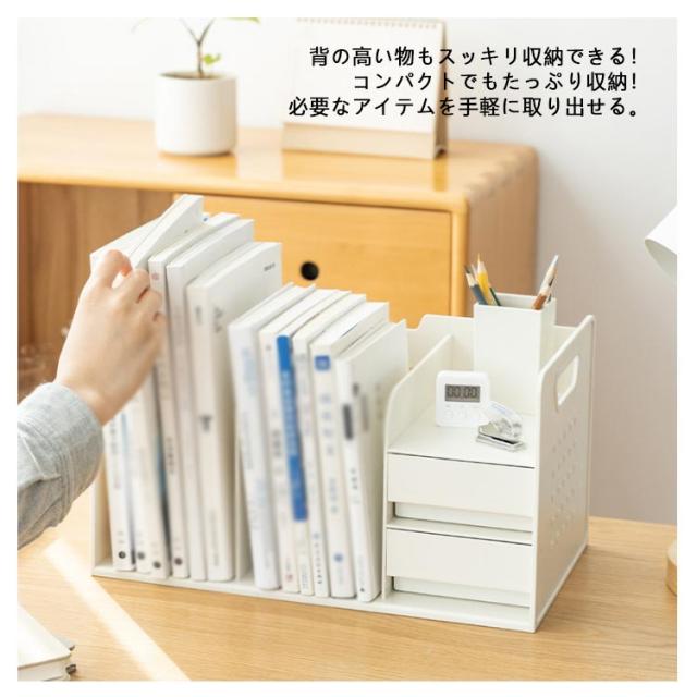 ブックスタンド 小物収納 持ち運べる 卓上収納 ブック収納スタンド デスクオーガナイザー 本立て 引き出し付き ペン立てなし ペン立てあり 収納用品 書類収納 デスク上収納 机上 本棚 卓上収納ラック 書類ホルダー ブック収納スタンド 仕切りスタンド