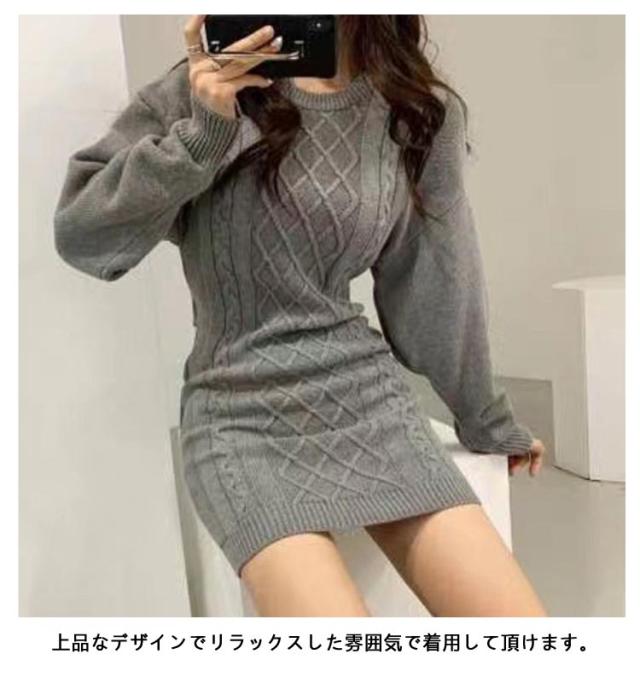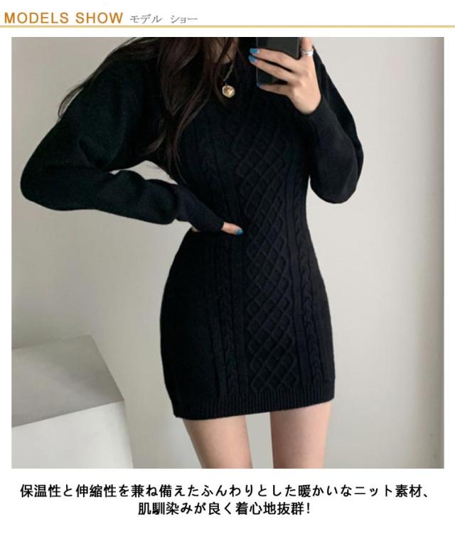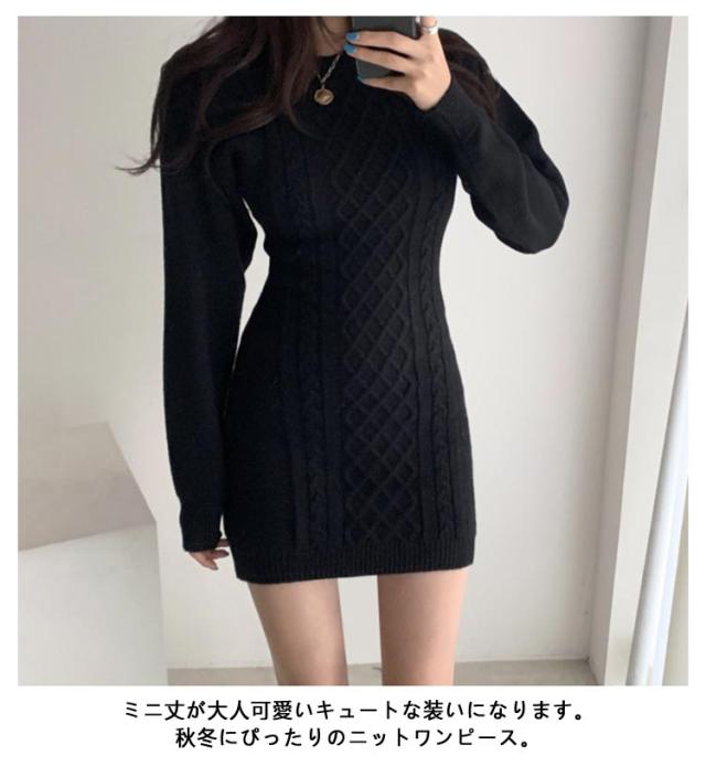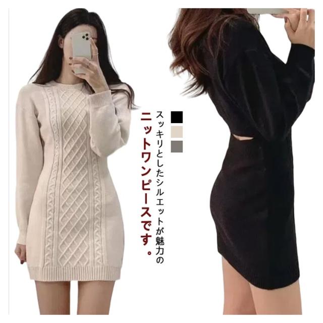 ニットワンピース レディース タイトワンピース 秋冬 ミニワンピ ひざ上 ミニ丈 ニット ワンピース 長袖 スリム フィット タイト クルーネック ケーブル編み バック開き 背中開き 大人 可愛い 大きいサイズ おしゃれ カジュアル