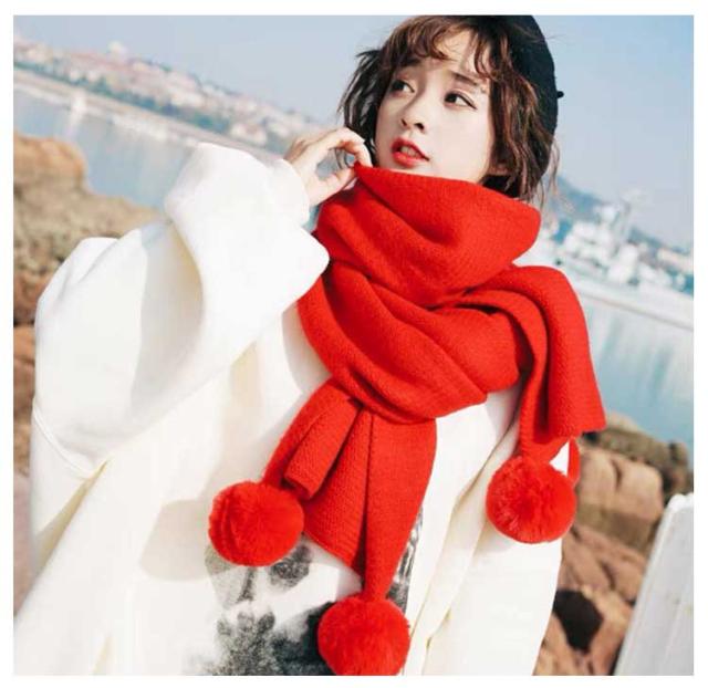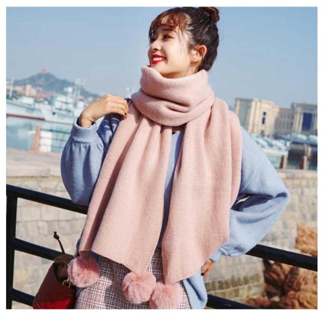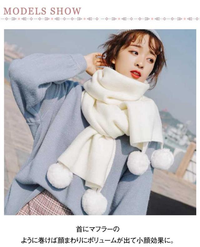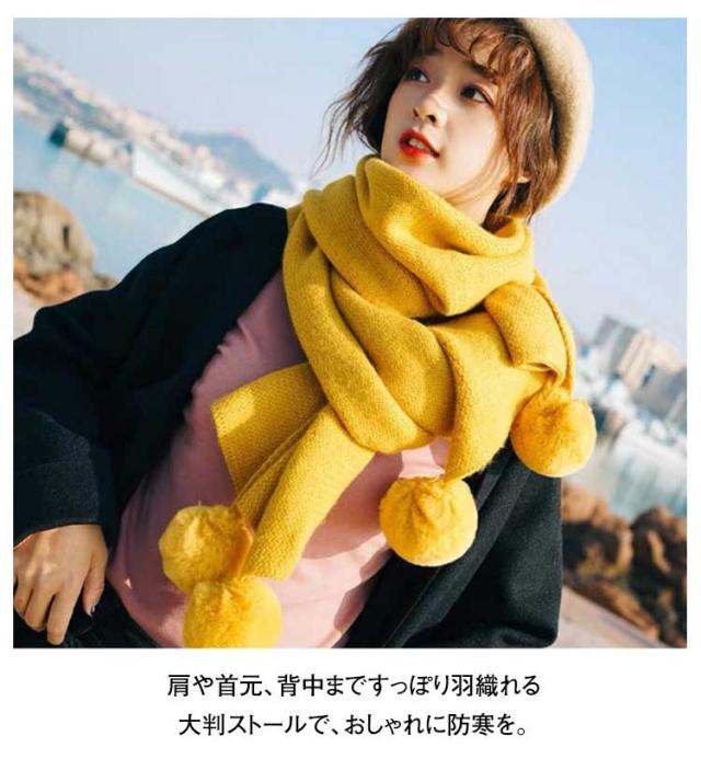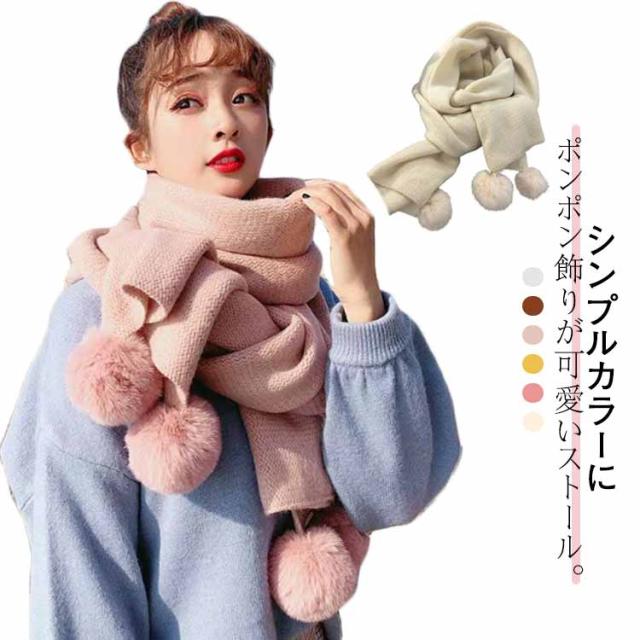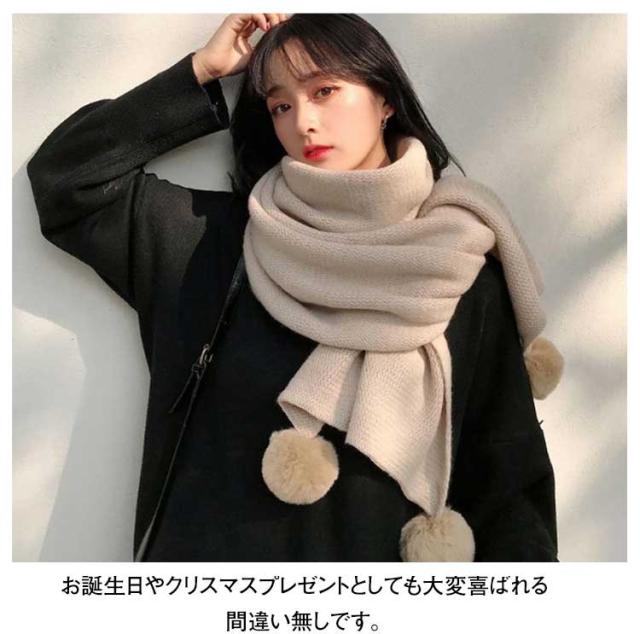 ポンポン付き マフラー ストール レディース 大判 大きい おしゃれ 秋 冬 ショール 防寒 無地 柔らかい エコファー もこもこ ぽんぽん 誕生日 クリスマス ギフト プレゼント 学生 高校生 大人可愛い 結婚式 デート 通学 通勤 お出かけ