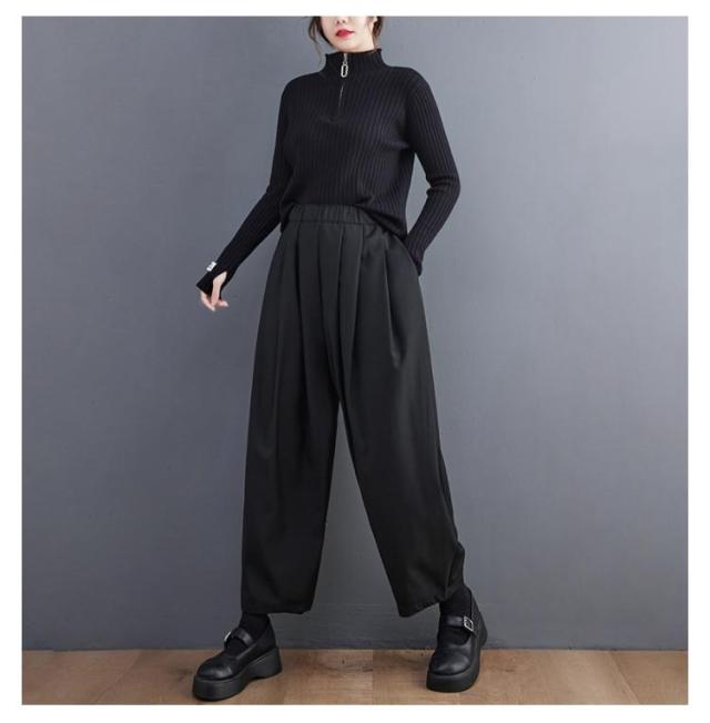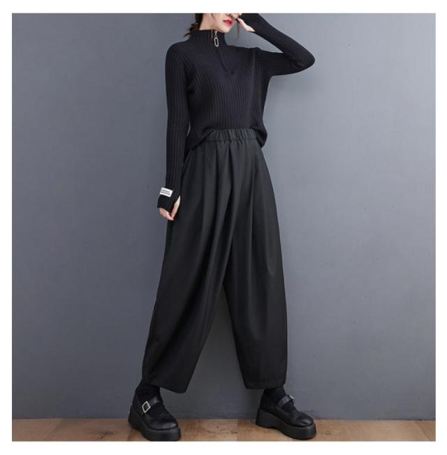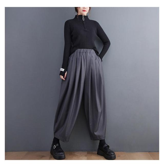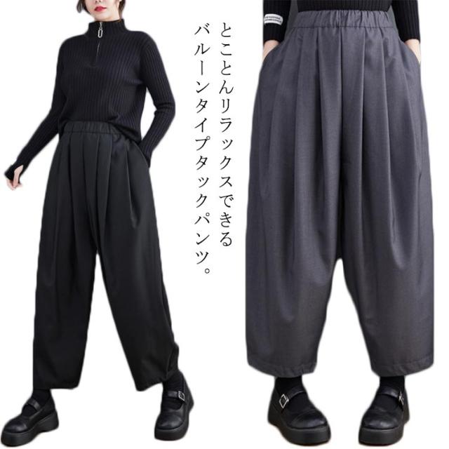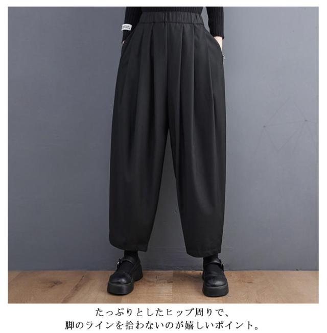 バギーパンツ バルーンパンツ タックパンツ ワイドパンツ ロングパンツ ウェストゴム テーパードパンツ レディース 送料無料 ポケット付き 無地 丸い カジュアル リラックス おしゃれ 韓国ファッション 春服 秋