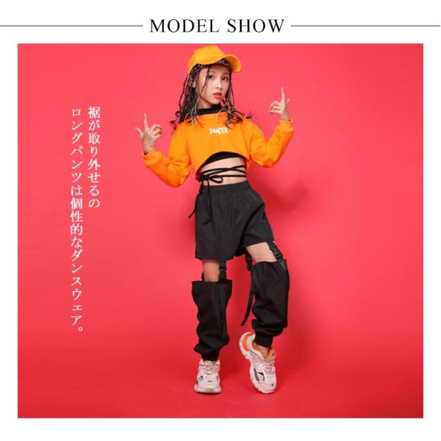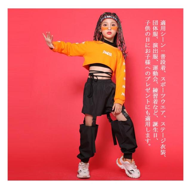 キッズ ダンスウェア ダンス 衣装 セットアップ ダメージ ロングパンツ 長袖/スウェット/トレーナー ショート丈 へそ出し スポーツブラ付き 子ども 女の子 ダンス衣装 ヒップホップ hiphop ジャズ ダンス 練習着 韓国