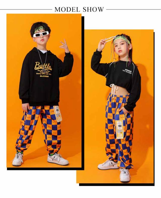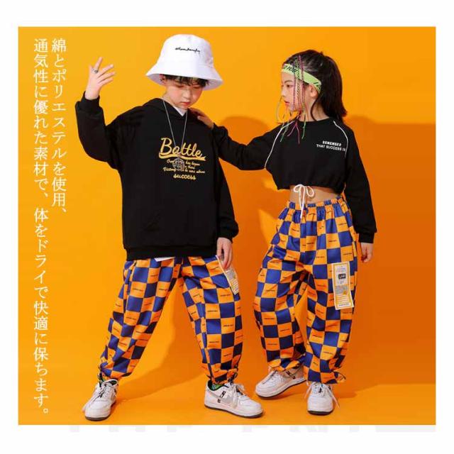 キッズ ダンス 衣装 ヒップホップ ダンスウェア セットアップ 黒 長袖 パーカー スウェット トレーナー ショート丈/クロップド丈 へそ出し ロングパンツ 子ども ダンス衣装 女の子 男の子 hiphop ジャズ ダンス 練習着 韓国