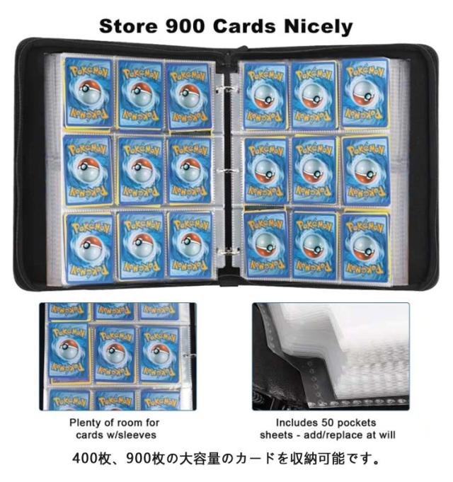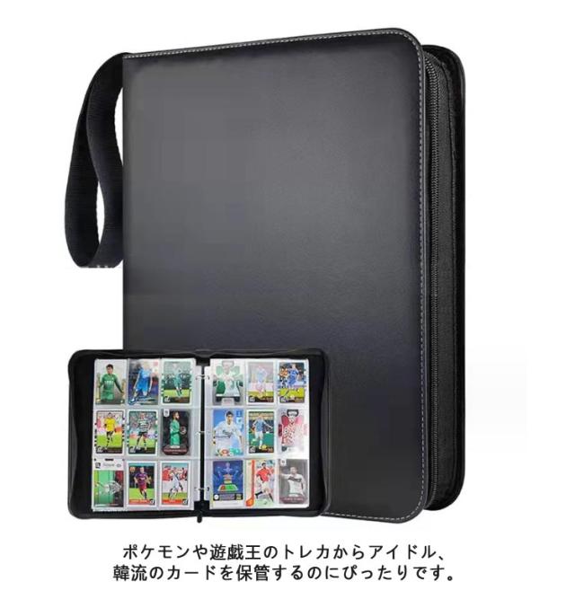 | トレーディングカード等のカードを収納するファイルになります。 400枚、900枚の大容量のカードを収納可能です。 ポケモンや遊戯王のトレカからアイドル、韓流のカードを保管するのにぴったりです。 素材は上質なPUレザーを用いており撥水機能があります。 ジッパーでの開閉式で水や埃の侵入を防ぎ、カードの落下の心配もありません。 ご自宅でのカードの保管やカバンに収納しての持ち運びに適しています。 | |