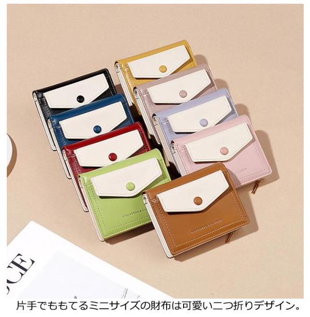 ミニ財布 二つ折り 財布 レディース 小さい財布 配色 かわいい カード入れ 小銭入れ 札入れ お札折らない 使いやすい ミニウォレット コンパクト 小さい スリム 薄型 カードケース コインケース 大人 学生 女子 女の子 中学生 高校生 おしゃれ 【送無】