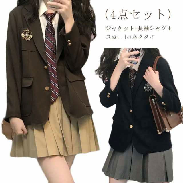制服 セット 女の子 スーツ 4点セット 女子高校生 jk服 女子高生 スクール 制服 上下セット スカートスーツ スカート 長袖シャツ ブレザー 中学生 高校生 韓国 学生服 コスプレ衣装 可愛い レディース フォーマル 文化祭 卒業式 発表会 送料無料