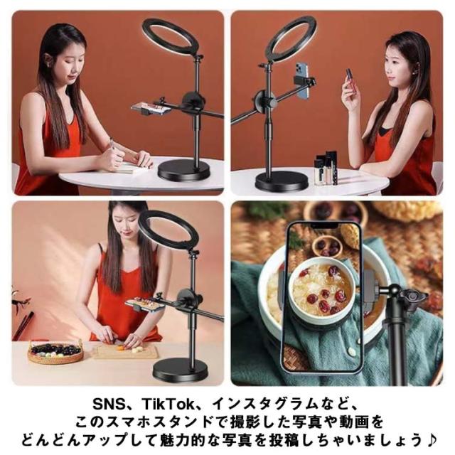 俯瞰撮影 スマホスタンド 手元撮影 動画撮影 LED 26cm リングライト スマホホルダー 真上から撮影 手元を映す 3色調光 10段階調節 伸縮 手振れ防止 料理動画 商品撮影 DIY 手作り ライブ配信 実況用 YouTube TikTok