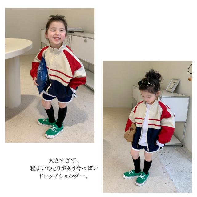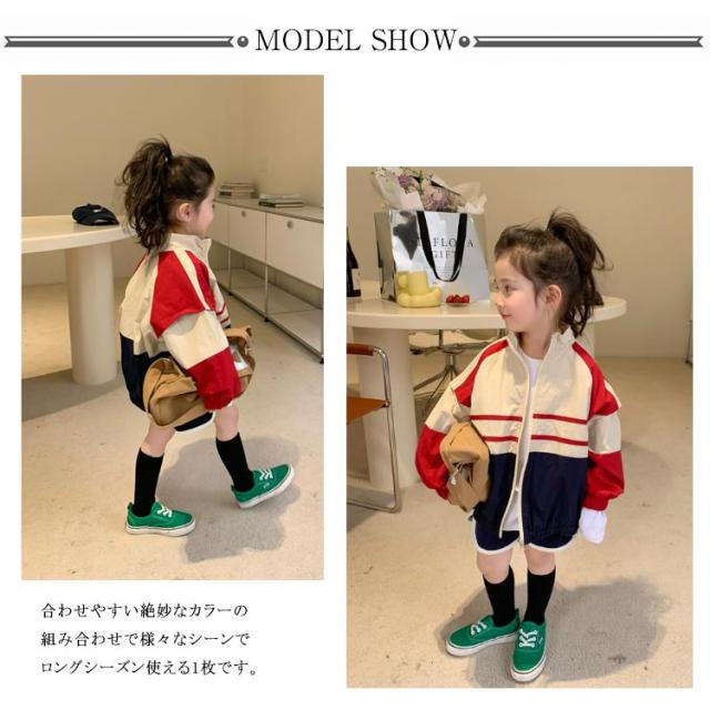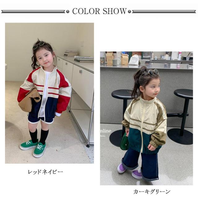 子供服 ウインドブレーカー マウンテンパーカー ジップアップ ジャケット 配色 切り替え キッズ用ウィンドブレーカー 女の子 キッズ ガールズ 軽量 羽織り 上着 アウター カジュアル 通園 通学 全2色