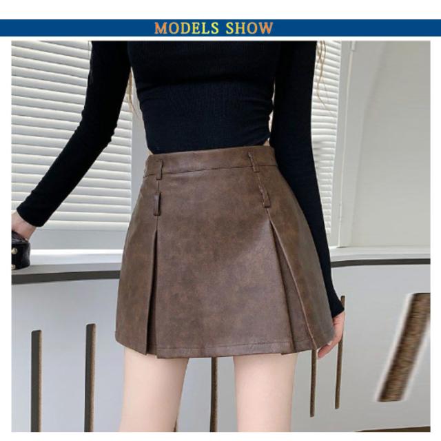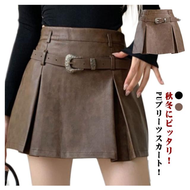スカート 秋冬 Aライン プリーツスカート レザースカート レザー調 ミニスカート ハイウエスト 美脚 大人向き ミニ丈 短い フレアミニスカート 大人カジュアル 大きいサイズ きれいめ おしゃれ 大人女性 無地 着?せ プリーツ ギフト 送料無料