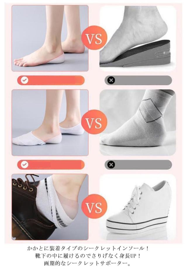 シークレット インソール 身長アップ バレない シリコンインソール シークレット かかと クッション 中敷き 靴下 隠せる インソール 足裏 フットケア 足ケア 足長効果 衝撃吸収 軽量 水洗い可 2cm 2.5cm 3cm 3.5cm 4cm 4.5cm 5cm 5.5cm