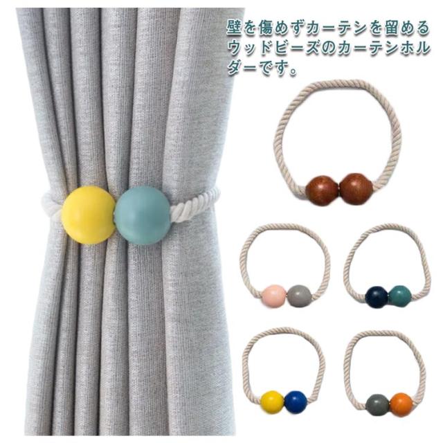 カーテンタッセル2本セット カーテン タッセル マグネット ウッドビーズ カーテンホルダー カーテンタッセル ウッドボール ふさかけ 留め具 アクセサリー ホルダー インテリア シンプル ドレープ 雑貨 おしゃれ