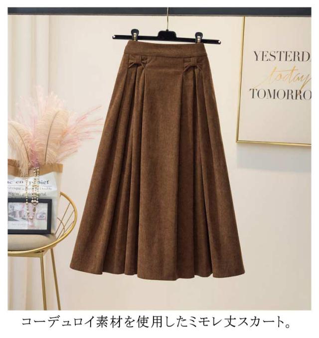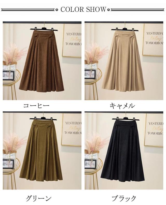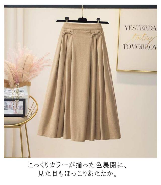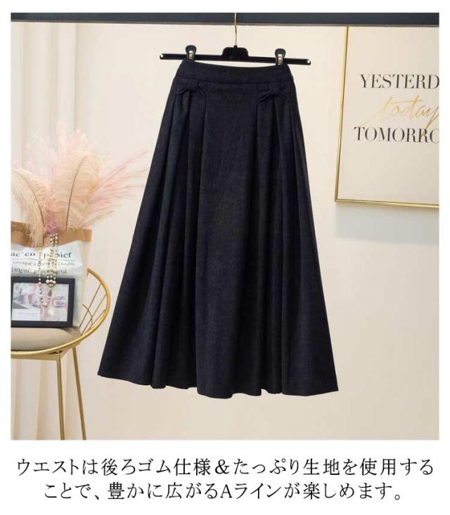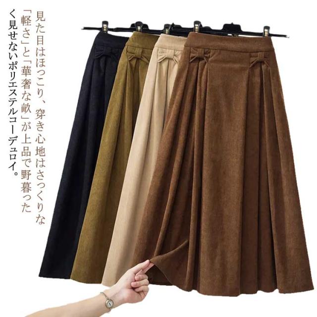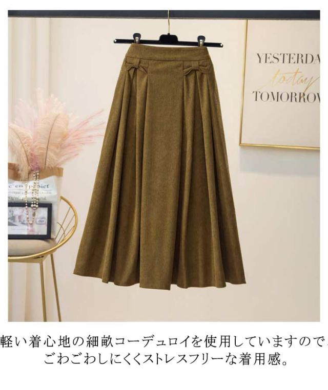 スカート レディース ボトムス ロングスカート 膝下 ひざ下 フレア 後ウエストゴム 大きいサイズ コーデュロイ タックスカート 定番カラー おしゃれ 上品 春 秋 冬