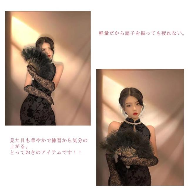 | ダンスの舞台演出にピッタリなとてもふわふわした羽のついたレース扇子です。 軽量だから扇子を振っても疲れない。羽根が抜けにくい、女性にもやすい! 見た目も華やかで練習から気分の上がる、とっておきのアイテムです!! ステージや祭りやイベント、ライブの相性抜群!ドレスを着て扇子踊りのダンスで主役に! 忘年会・新年会・イベントの余興アイテムに! | |