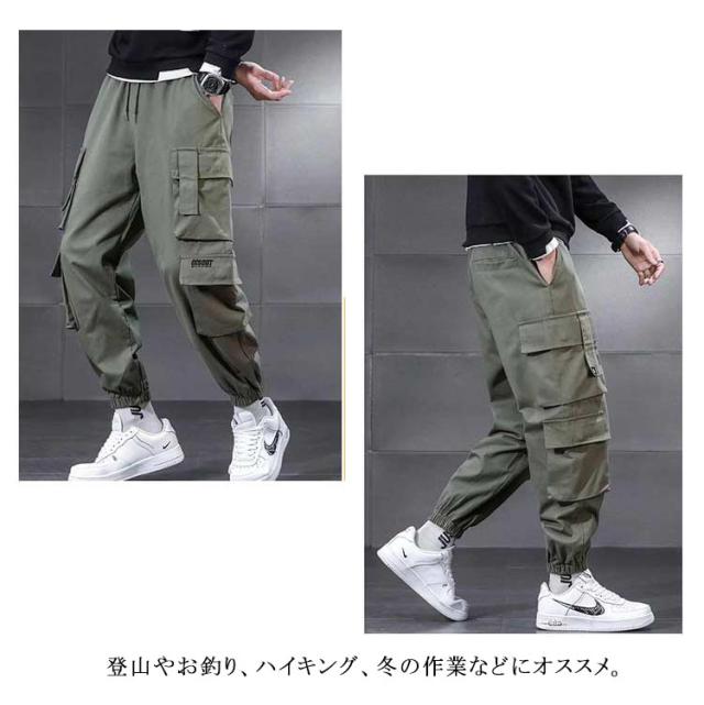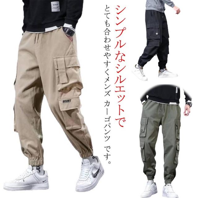 カーゴパンツ メンズ パンツ ロングパンツ 春秋 ロング ポケット付き ズボン ゆったり 無地 ワークパンツ かっこいい
