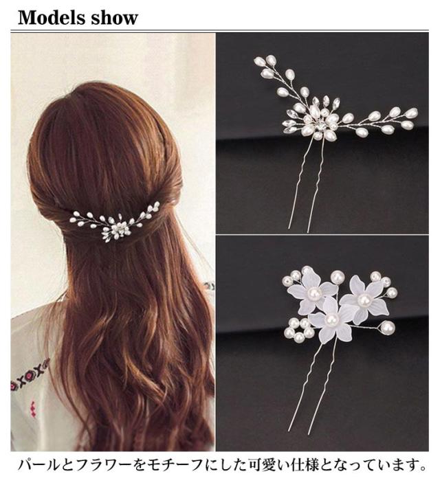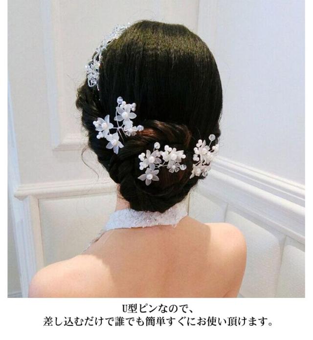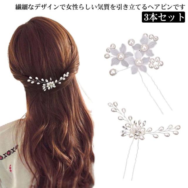Uピン ヘアピン 髪飾り ヘアアクセサリー 3本セット 花飾り パーティ 結婚式 卒業式 成人式 和装 花嫁 普段使い プレゼント お洒落 上品 きれいめ 送料無料