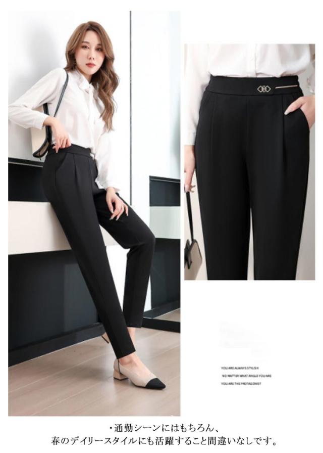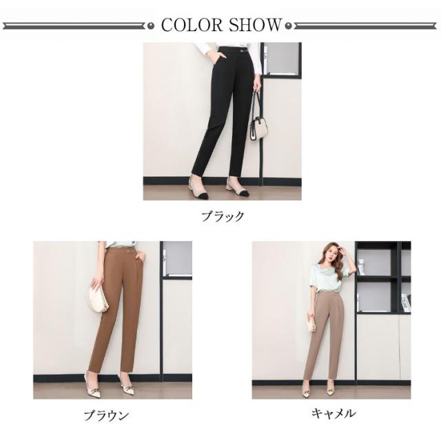 テーパードパンツ レディース ウェストバックゴム タック入り 細身 美脚パンツ ポケット付き 通勤 オフィスカジュアル 春 秋 全3色