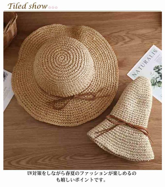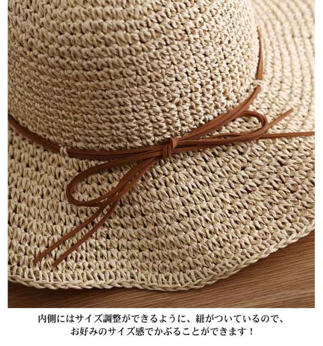 麦わら帽子 レディース ハット 春夏 紫外線対策 折り畳み UVケア uv対策 日よけ 小顔 リボン かわいい おしゃれ シンプル つば広 軽量 女性 サイズ調整 調節可能 ママ 外出 旅行 リゾート 天然素材 通気性 涼しい 女性 20代 30代 40代 ギフト プレゼント 送料無料
