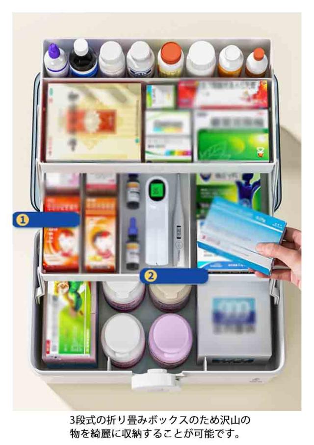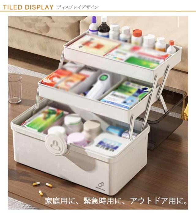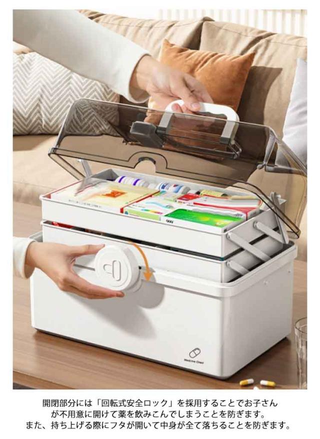 選べる2サイズ 救急箱 薬箱 三段式 収納ボックス クリア 家庭用 車載用救急箱 大容量 多機能収納ケース 救急ボックス 取っ手付き 軽量 コンパクト 携帯便利 応急処置 薬入れ 小物入れ