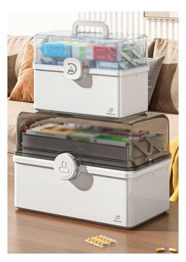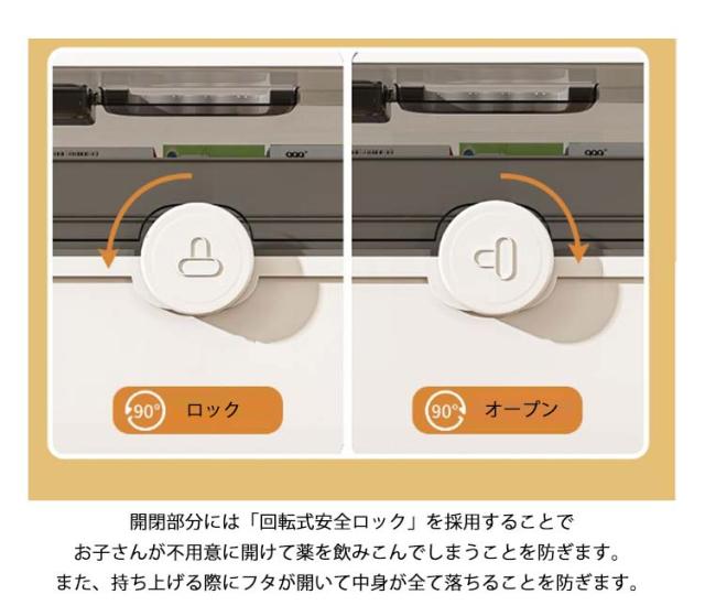 | 使いやすさと機能性にこだわった、おしゃれな薬ケースです! 家庭用に、緊急時用に、アウトドア用に。 3段式の折り畳みボックスのため沢山の物を綺麗に収納することが可能です。 開閉部分には「回転式安全ロック」を採用することでお子さんが不用意に開けて薬を飲みこんでしまうことを防ぎます。 また、持ち上げる際にフタが開いて中身が全て落ちることを防ぎます。 フタは180度開閉タイプのため、どこに何をしまっているか一目で把握することができ緊急時でも直ぐに薬を取り出せます。 透明カバーのためフタを閉めた状態でも中身が一目瞭然です♪ | |