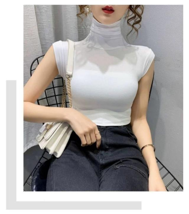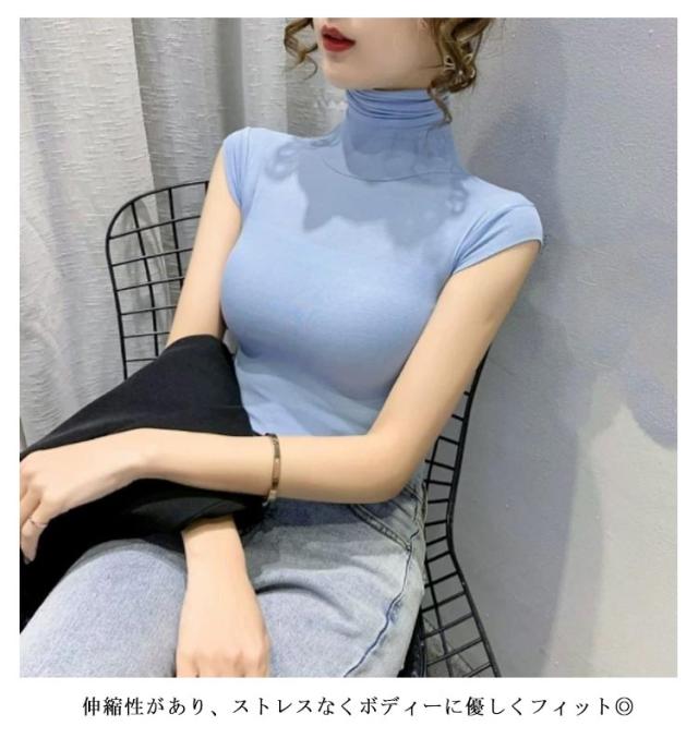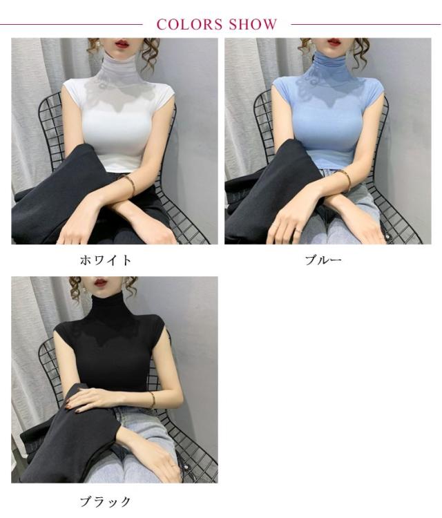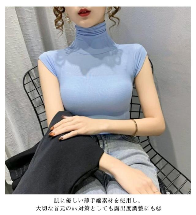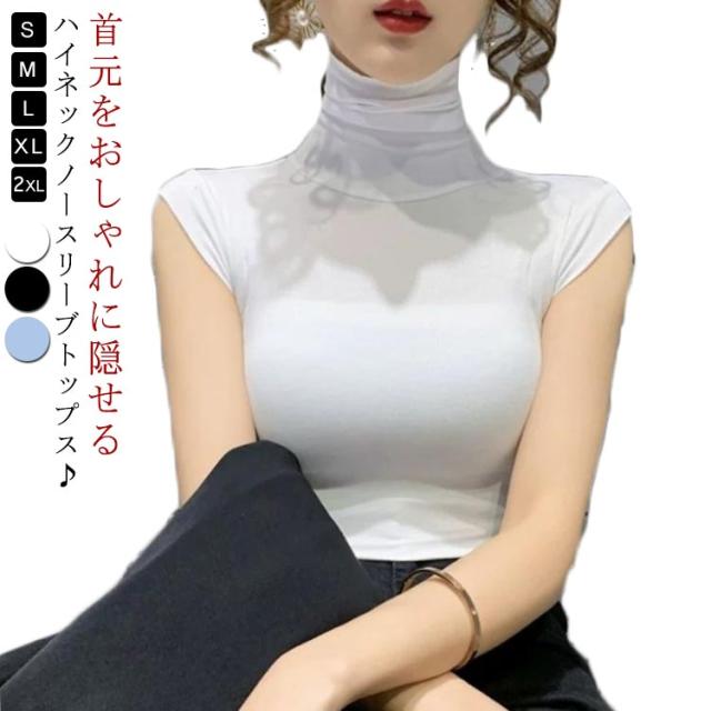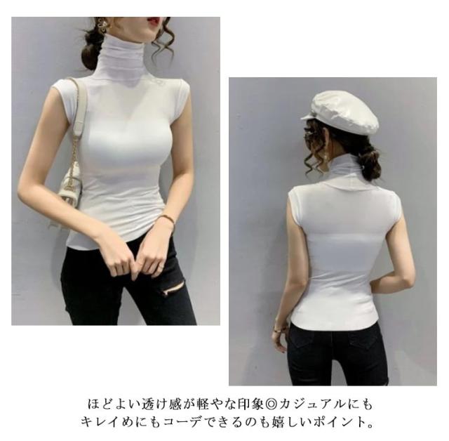 ハイネック ノースリーブ トップス カットソー 送料無料 タンクトップ 伸縮性 紫外線対策 薄手 インナー サマー 春夏 重ね着 レイヤード タイト 白 黒