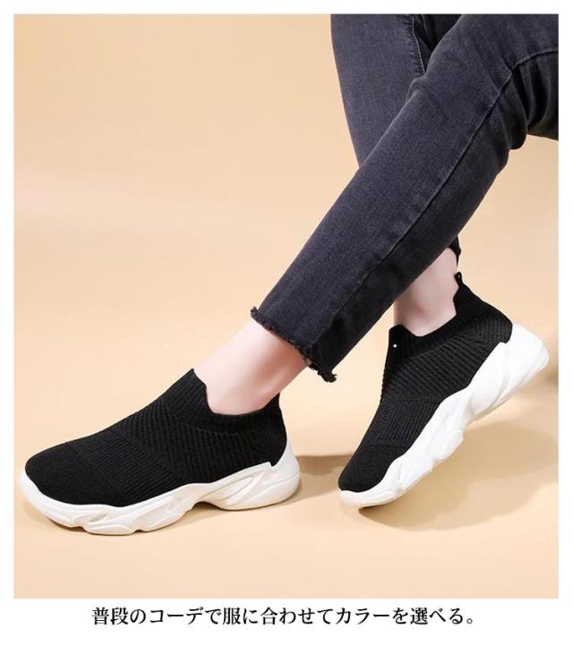 | 超軽量設計で足が疲れにくいスニーカー 足首にしっかりホールドするのに、肌当たりが優しいのはニット素材ならでは。 伸縮するから、サッと履くだけで自分サイズにフィットします 通気性のいいアッパーでムレにくい クッション性も良く足に負担がかからない ジムやランニング、ウォーキングにもおすすめ 普段のコーデで服に合わせてカラーを選べる | |