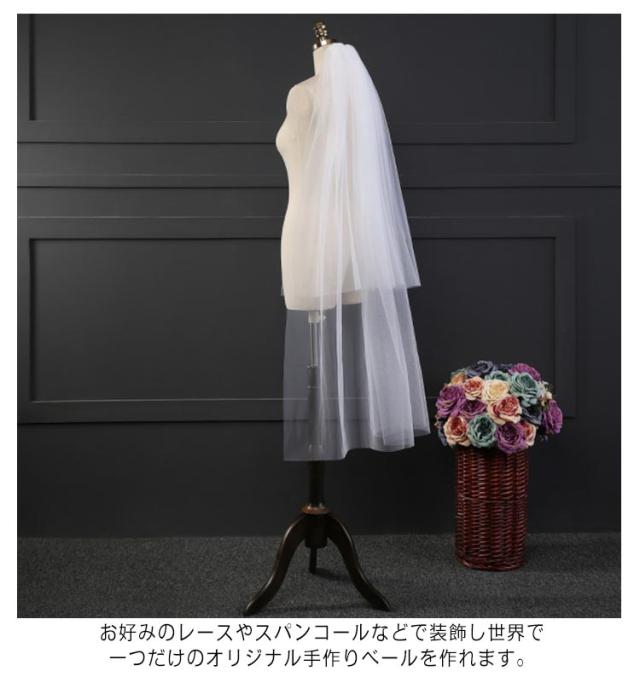 | 永遠の花嫁定番ウェディングベール・装飾のないロングタイプです。 もっともシンプルなウェディングベールをお求めの方に ボリュームがあるのに重くならず、軽やかにお召し頂けます。 チャペルなど厳かで豪華な会場での挙式なら、ドラマティックなロングベールがぴったり。 お好みのレースやスパンコールなどで装飾し世界で一つだけのオリジナル手作りベールを作れます。 | |