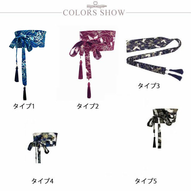 | おしゃれな和風ベルト!選べる20柄 モダンでとってもおしゃれな和風のサッシュベルトです。 まるで着物の帯と見間違える程素敵なデザインですね。 和柄プリントが全体に施された上品なデザイン。 デイリー使いにももちろん浴衣などでのアレンジを楽しんでもGOOD! フロント部分結んで着脱できるから、楽に着脱可能です。 お手持ちの帯締めも使用出来るのでイメージが変わります コスプレファンのお嬢さん達には和風コルセット風の帯ベルトはいかが? | |