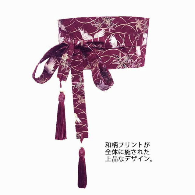和風ベルト レディース サッシュベルト リボン サッシュ ベルト コルセット ハイウエスト 太ベルト ワンピース チュニック 鶴柄 桜柄 和柄 着物 帯 ウエストマーク フリンジタッセル おしゃれ 太め 幅広 細見え
