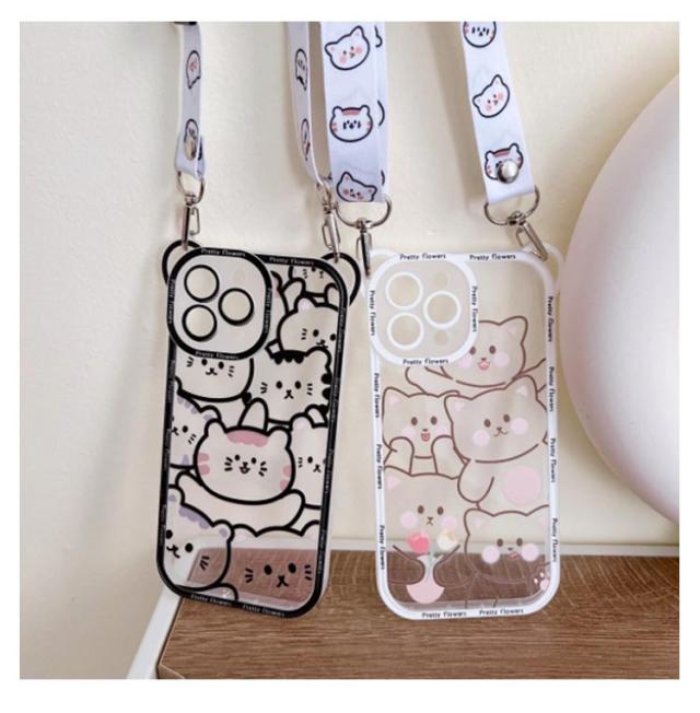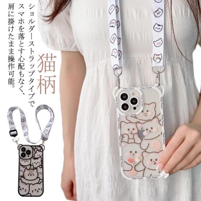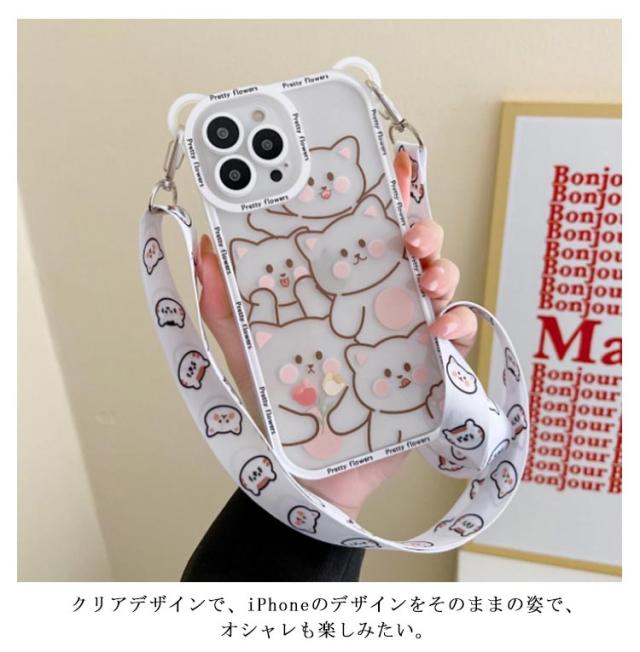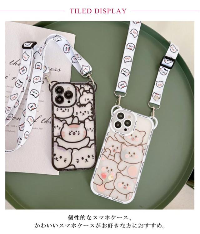 iPhone14 ショルダータイプ iPhone12 ProMax 猫柄 クリア ケース iPhone11 可愛い アイフォン XSMAX X XS アイフォン12 アイフォン 13 iPhone 7Plus 8Plus スマホケース iPhone12Pro 肩掛け ケース iPhone14ProMax 斜掛け 首掛け ショルダーストラップ 可調節長さ iphone 11