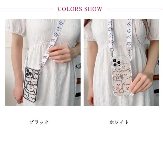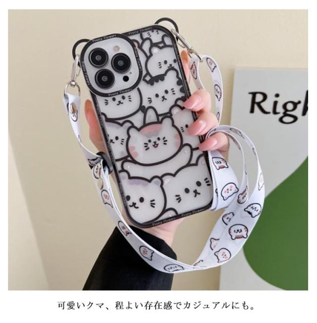 | ショルダーストラップタイプでスマホを落とす心配もなく、肩に掛けたまま操作可能。 両手は常に空いてる状態で、旅行にぴったり! 個性的なスマホケース、かわいいスマホケースがお好きな方におすすめ。 可愛いクマ、程よい存在感でカジュアルにも。 クリアデザインで、iPhoneのデザインをそのままの姿で、オシャレも楽しみたい。 ファッションのアクセントにぴったりです。 | |