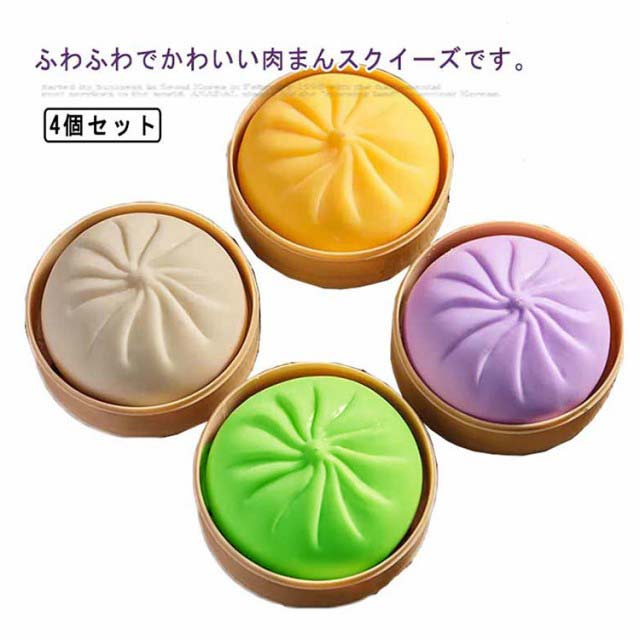 4個セット 肉まん スクイーズ おもちゃ プッシュポップ ストレス解消グッズ キッズ 子供 スクイーズ玩具 知育玩具 まんじゅう ストレス解消 癒し ストレス発散 もちもち ふわふわ 可愛い ぷにぷに 低反発 せいろ付き 送料無料 かわいい ギフト プレゼント 誕生日