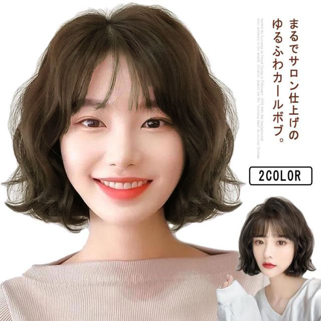 ウィッグ カール ボブ フルウィッグ 自然 ウイッグ wig かつら ういっぐ 送料無料 レディース ショートボブ カール ふんわり 茶髪 黒髪 つけ毛 女性 ネット付 ショートヘア 小顔 ボブウィッグ 白髪隠し コスプレ ミセス