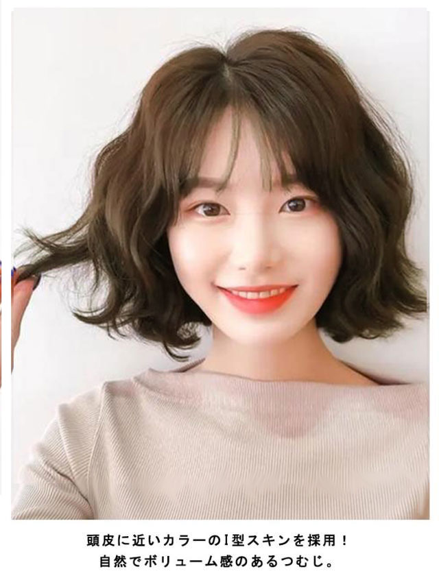 | まるでサロン仕上げのゆるふわカールボブ。 軽く手で握ってスタイリングするだけでこなれ感のあるヘアに大変身できちゃいます♪ 目元をきれいに見せてくれる短めバング! 頭皮に近いカラーのI型スキンを採用!自然でボリューム感のあるつむじ。 キャップはネットで通気性が良く快適なつけ心地♪ 自由に調節が可能なアジャスタ付! | |