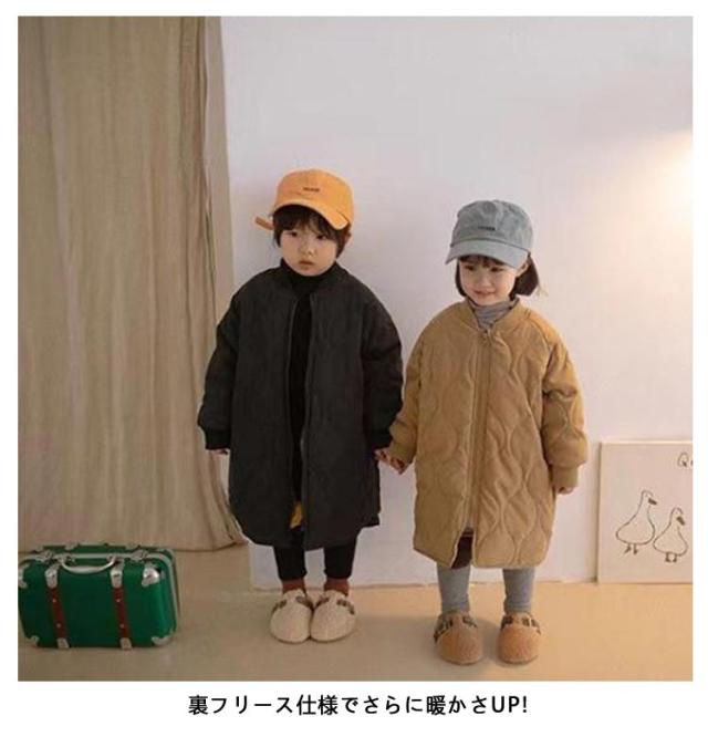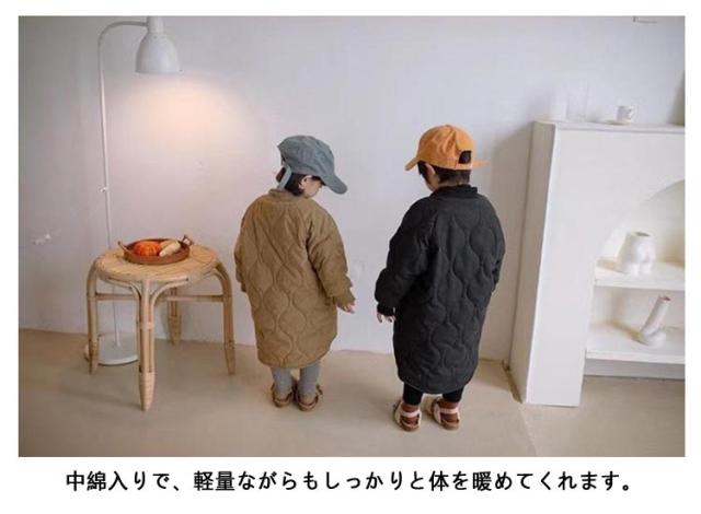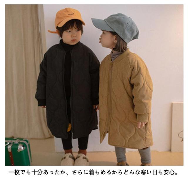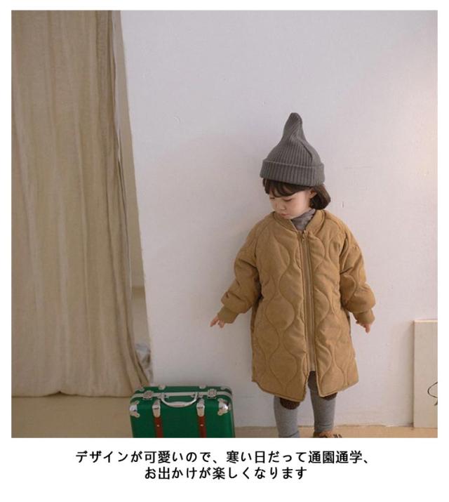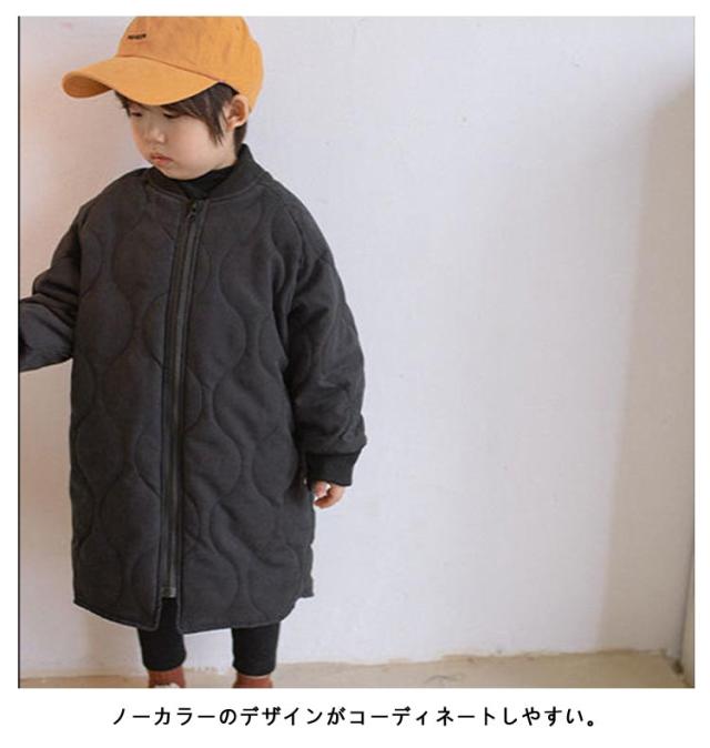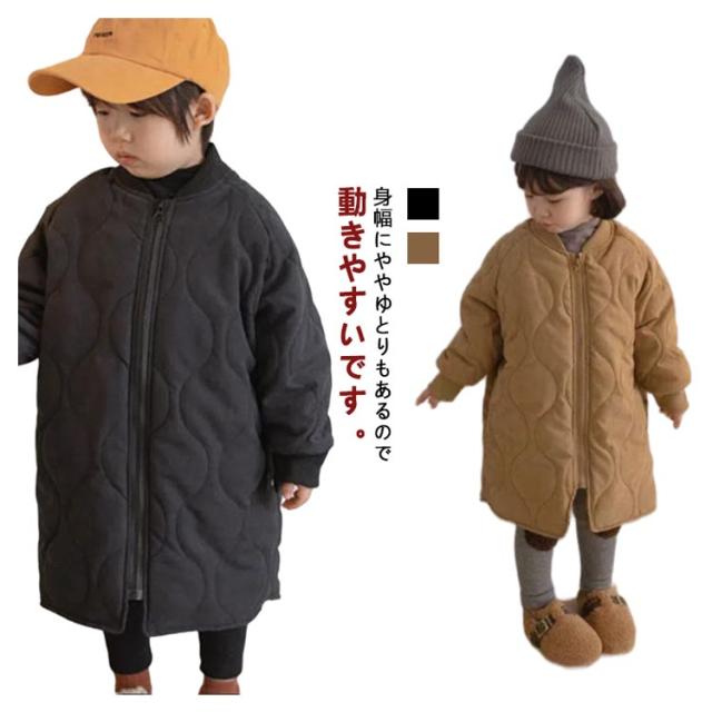 ノーカラーコート キルティングジャケット キッズ 中綿コート 中綿ジャケット 子供服 キルティングコート 男の子 女の子 裏起毛 アウター ロングコート 厚手 長袖 防寒 オーバーサイズ ゆったり 冬 上着 羽織り 可愛い 暖かい キッズ服 子ども服 冬服 秋服 送料無料