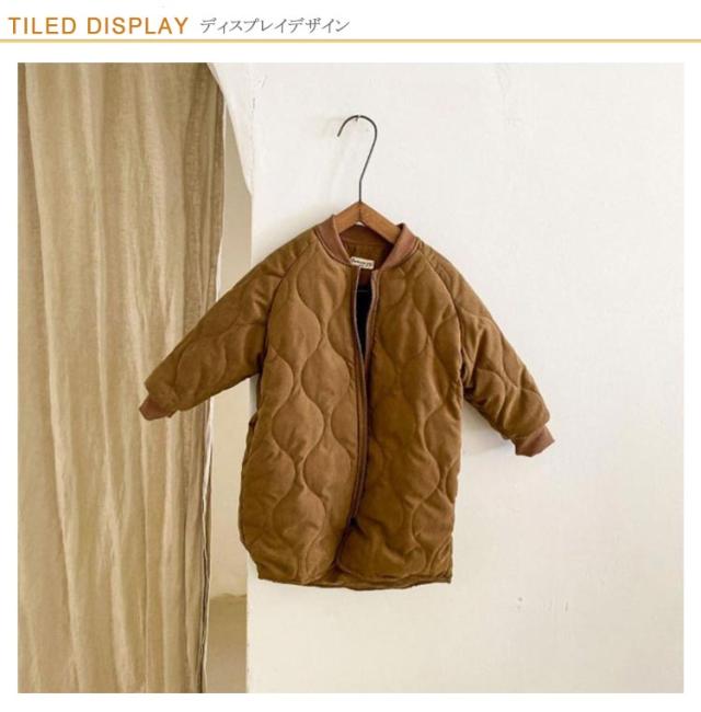 | 90~140cm 暖かく、軽い着心地のキッズキルティングジャケット 中綿入りで、軽量ながらもしっかりと体を暖めてくれます。 身幅にややゆとりもあるので動きやすいです。 裏フリース仕様でさらに暖かさUP! 膝まであるロング丈ですっぽりと防寒が叶います。 一枚でも十分あったか、さらに着もめるからどんな寒い日も安心。 ノーカラーのデザインがコーディネートしやすい。 デザインが可愛いので、寒い日だって通園通学、お出かけが楽しくなります♪ | |