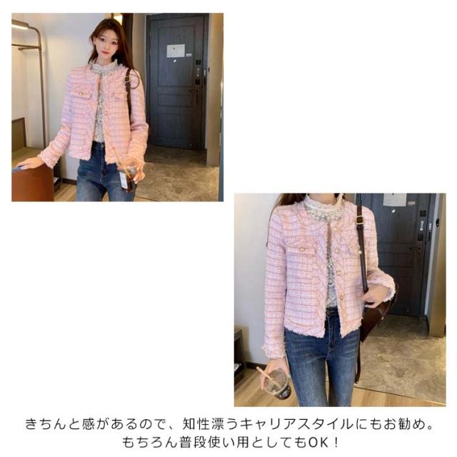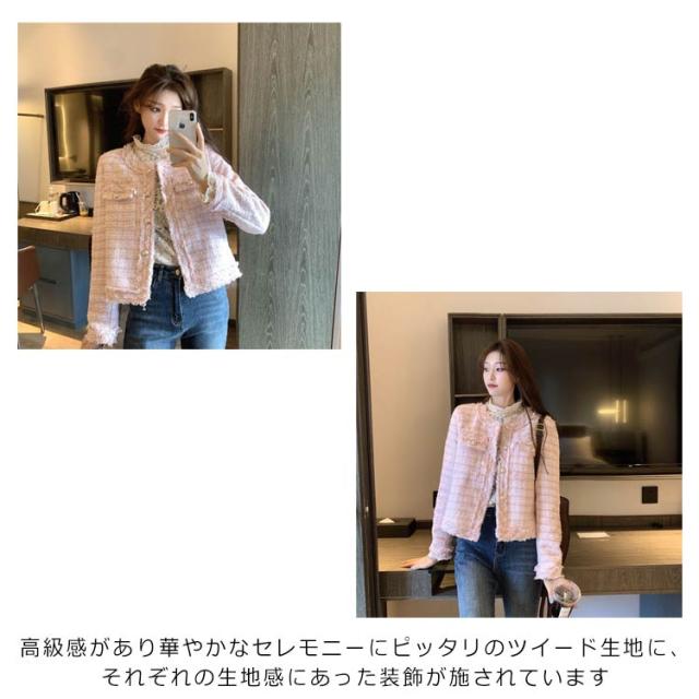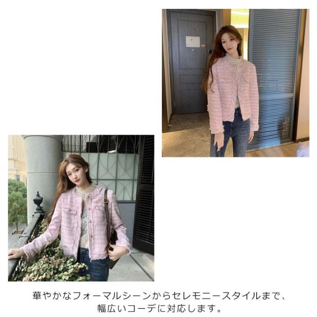 | フォーマルに最適!大人フェミニンな雰囲気のジャケット。 高級感があり華やかなセレモニーにピッタリのツイード生地に、それぞれの生地感にあった装飾が施されています ボレロ風に羽織れるので、気軽にカジュアルにご着用いただけます。 シンプルな丸首と癖のないデザインは、様々なシーンで活躍します。。 華やかなフォーマルシーンからセレモニースタイルまで、幅広いコーデに対応します。 きちんと感があるので、知性漂うキャリアスタイルにもお勧め。 もちろん普段使い用としてもOK! | |