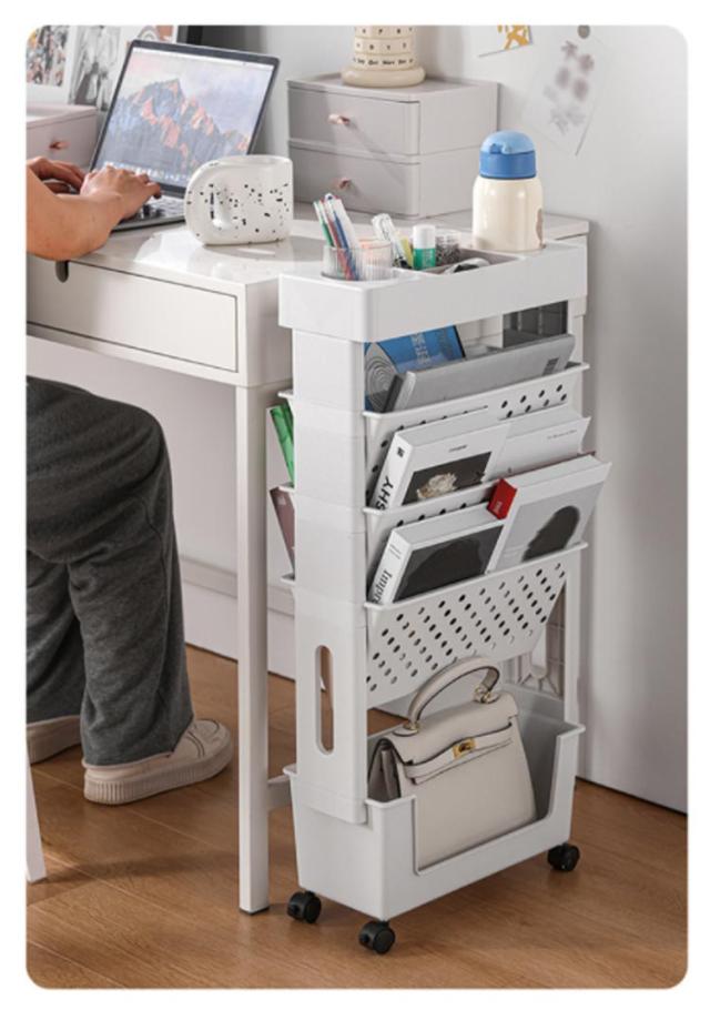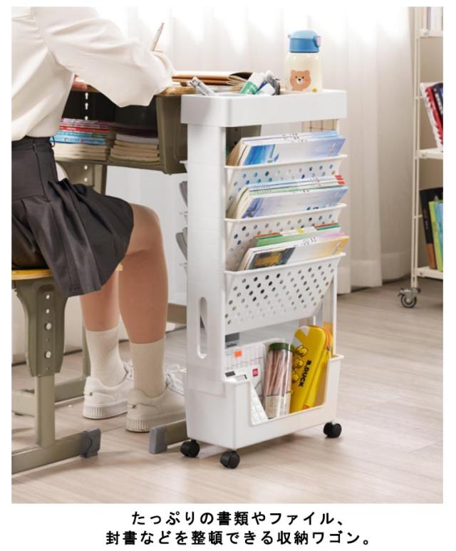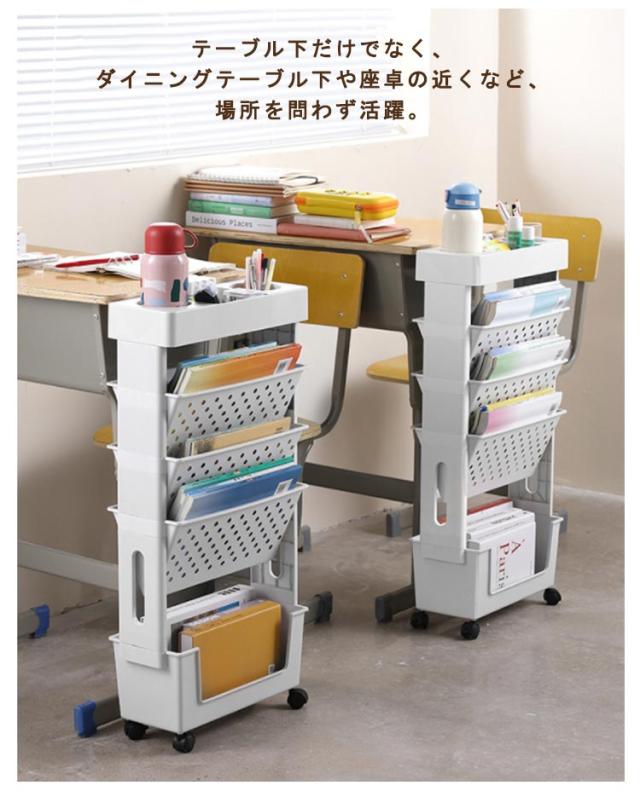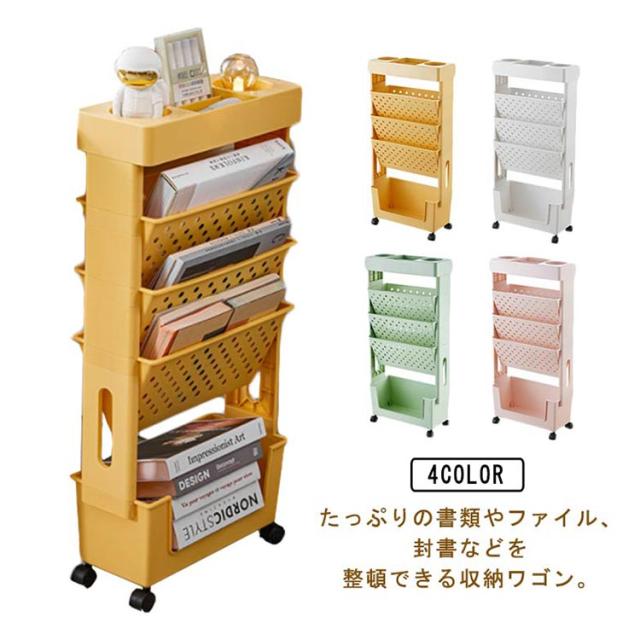 ファイルワゴン キャスター付 デスク下収納 4段 5段 斜め棚 仕切り オフィス デスク下 机下 ファイル 収納ラック 本棚 取り出しやすい A4 書類収納 本収納 テレワーク 北欧 おしゃれ 白 ホワイト 省スペース