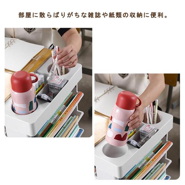 | たっぷりの書類やファイル、封書などを整頓できる収納ワゴン。 仕切り板が斜めに設置されるので、背表紙が見やすくファイルなどが取りやすい構造です。 部屋に散らばりがちな雑誌や紙類の収納に便利。 テーブル下だけでなく、ダイニングテーブル下や座卓の近くなど、場所を問わず活躍。 キャスター付きだから、スムーズに移動できて便利。 お掃除やお部屋の模様替えなどでの移動もスイスイ。 | |