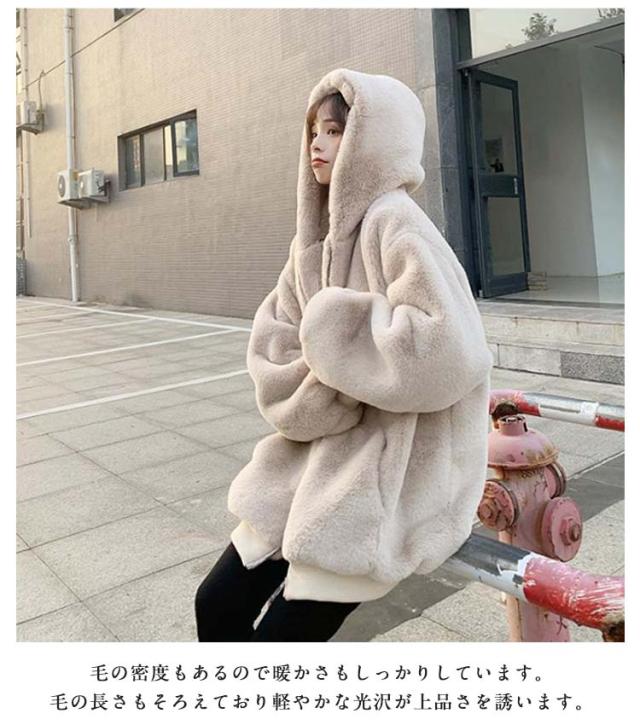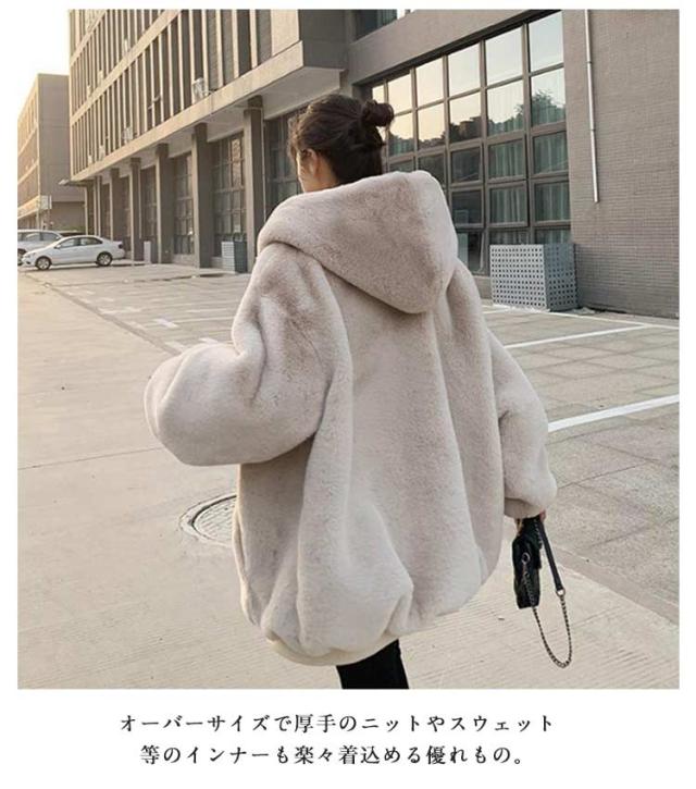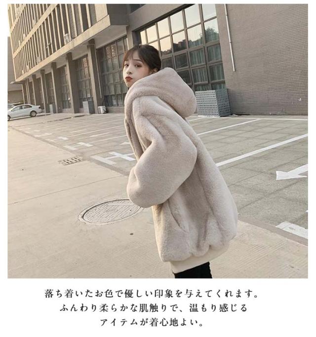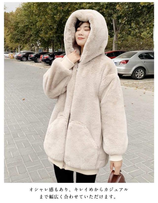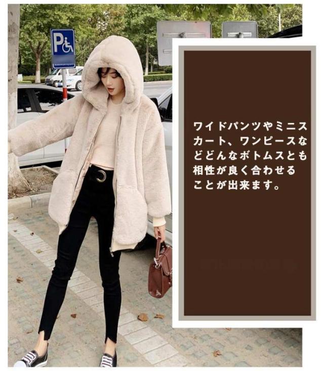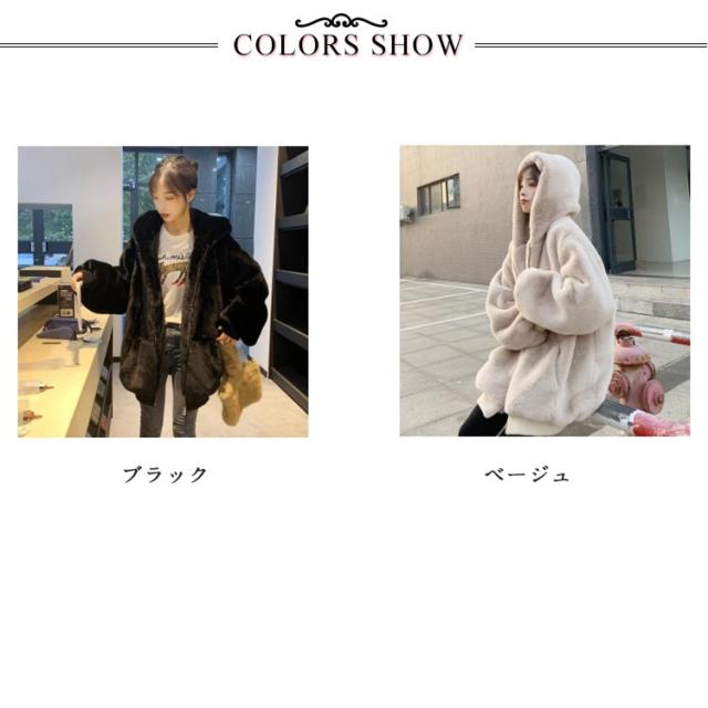 フード付き フェイクファー アウター ファーブルゾン ジャケット レディース エコファー パーカー 防寒 アウター ショート丈 ゆったり カジュアル もこもこ ふわふわ 暖かい 秋冬 韓国風 おしゃれ 通勤 防寒 ブラック ベージュ