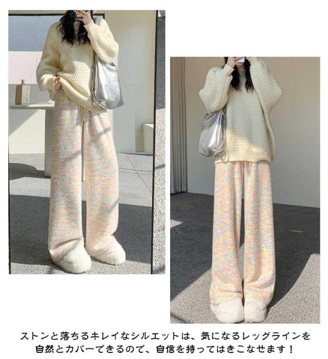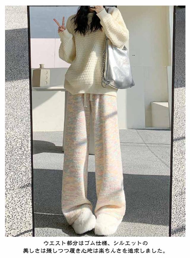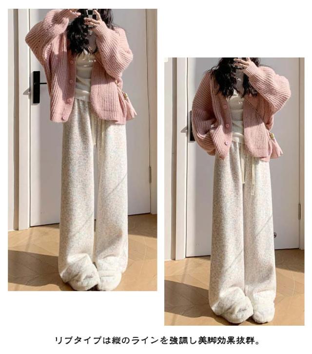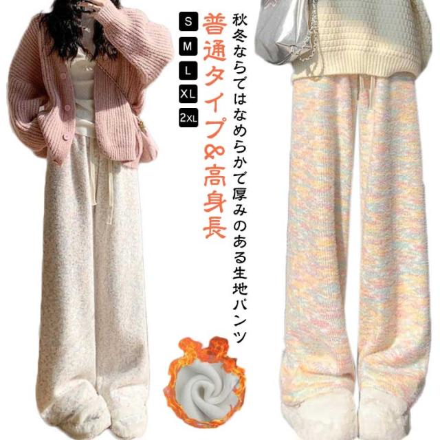ワイドパンツ ニットパンツ レディース 裏起毛 パンツ 裏ボア ボア パンツ あったかいズボン 高身長 低身長 美脚 脚長 ストレートパンツ 秋冬 冬 ストレートパンツ ハイウエスト ロング ゆったり 黒 無地 ふわふわ あったかい ズボン 通勤 入園式 卒業式 送料無料