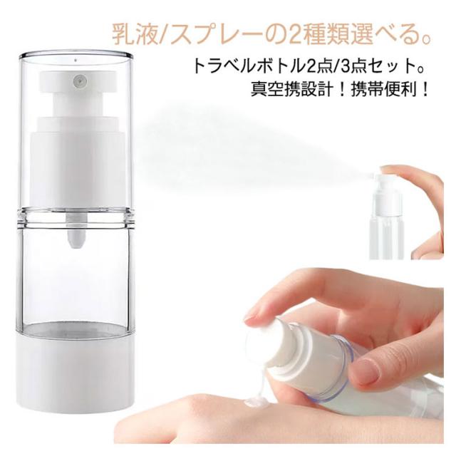 | トラベルボトル2点/3点セット。真空携設計!携帯便利! 乳液/スプレーの2種類選べる。 良質を使い、厚さアップ、環境に優しく、健康材料、異臭なし。 密閉性が良くて転倒しても漏れません。液漏れなく携帯すると安心です。 壁に残りはなくて、液漏れもなく、携帯便利で洗濯不要です。 | |