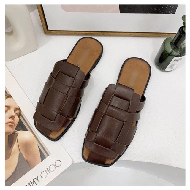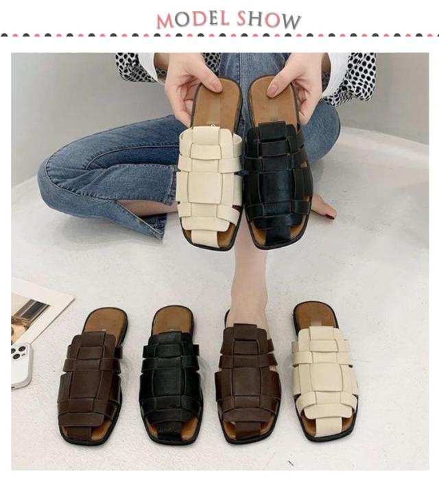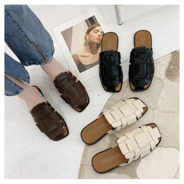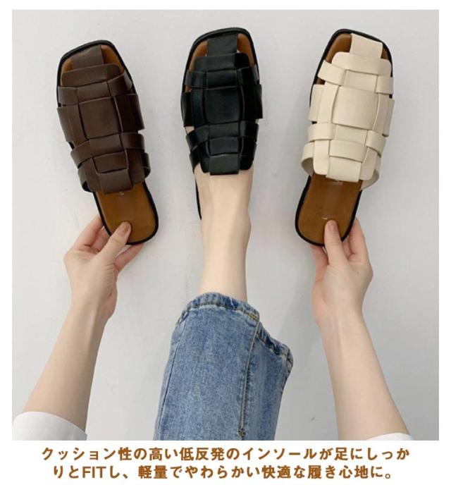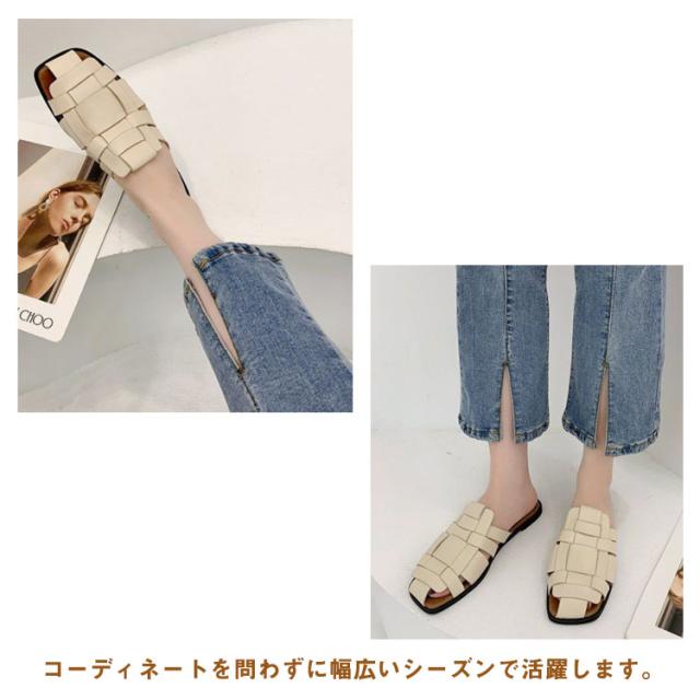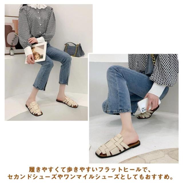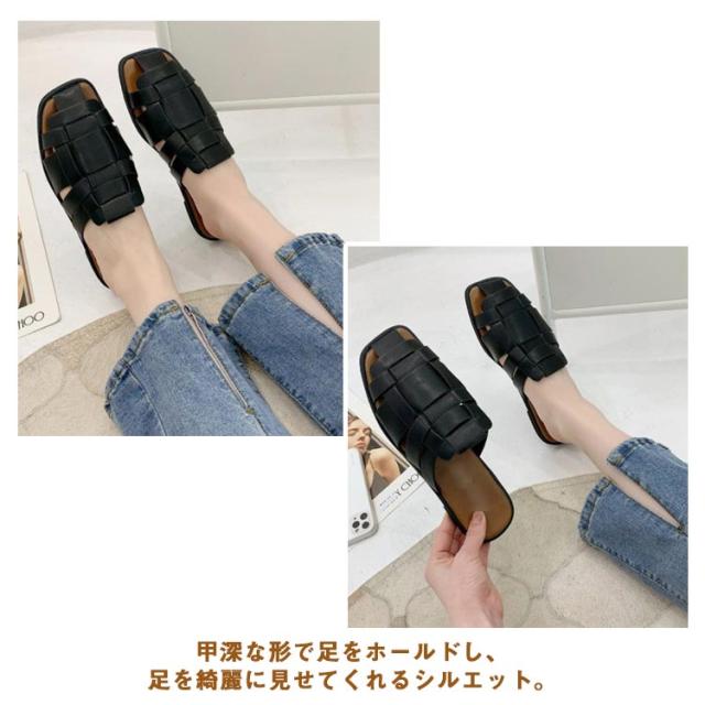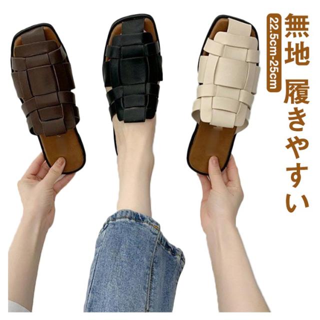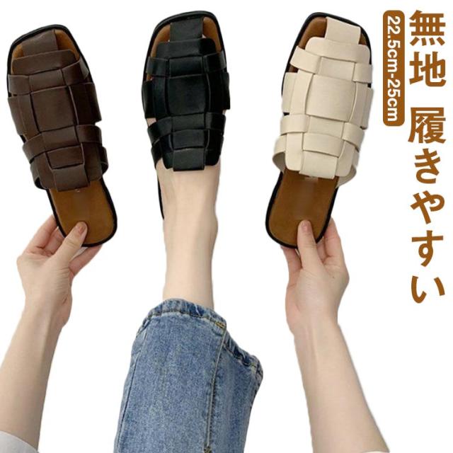 サンダル スリッパ レディース スクエアトゥ 編み込み 前詰まり 歩きやすい ぺたんこ シューズ フラットサンダル 編み込みサンダル 春 夏 レディース ローヒール パンプス レザー 痛くない 社内 通勤 無地 履きやすい カジュアル 22.5cm-25cm 送料無料