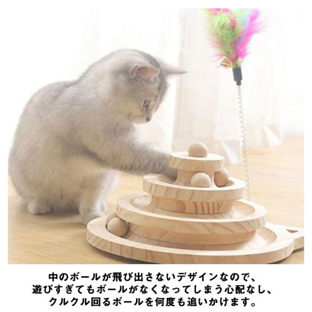 猫おもちゃ 猫のおもちゃ 木製 遊ぶ盤 回転 ボール 猫じゃらし 据え置き タワー おもちゃ付き 羽棒付 知育玩具 安定 子猫 多頭飼い 転倒防止 省スペース コンパクト猫玩具 遊び場 可愛い 人気 組み立て不要 猫用品 運動不足 ストレス解消 安全素材 木製 ナチュラル