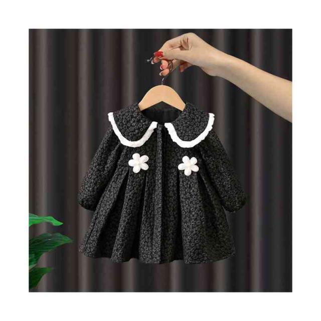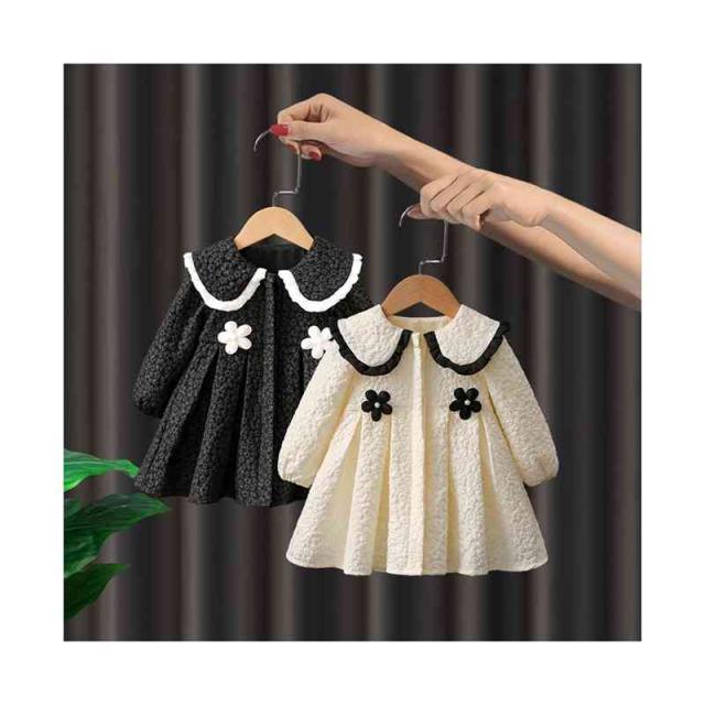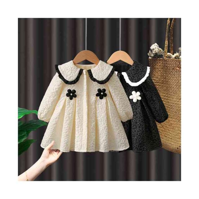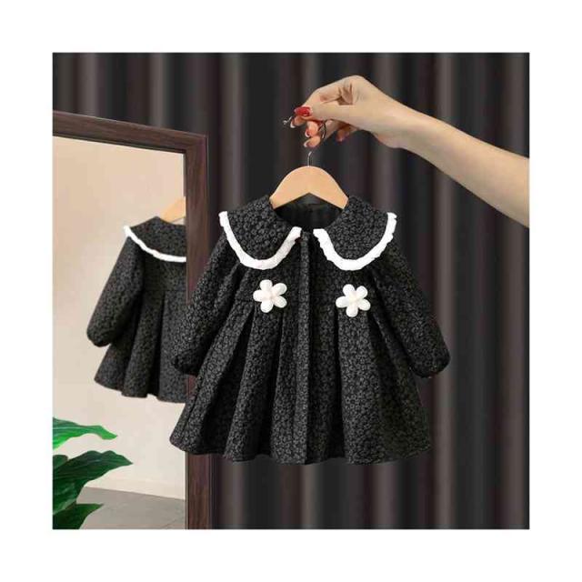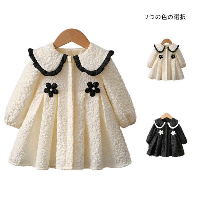 キッズ 花ワンピース 長袖 春秋 姫様 ジュニア ワンピ ロングワンピース フラワーワンピース 折襟 フリルワンピース おしゃれワンピース シンプル カジュアル おしゃれ 送料無料 かわいい きれいめ フレアワンピース