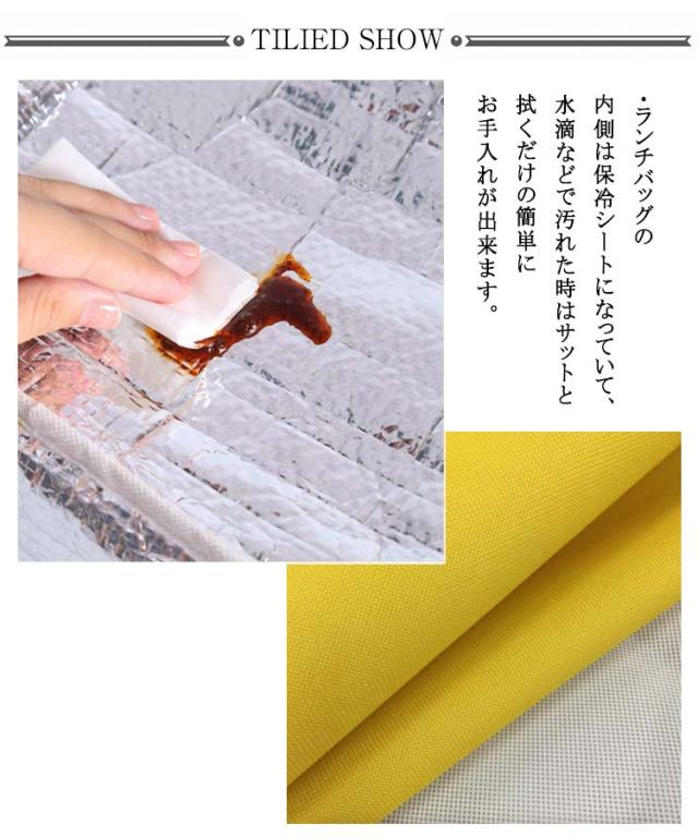 | ・お弁当箱を持ち歩くのにぴったり! ・お弁箱がすっぽり入る保冷機能付きのランチバッグ。 ・ランチバッグの内側は保冷シートになっていて、水滴などで汚れた時はサットと拭くだけの簡単にお手入れが出来ます。 ・外側にポケット付き。 ・お弁当などの持ち運び以外に、小物などを入れるバックとしてもオススメです。 | |