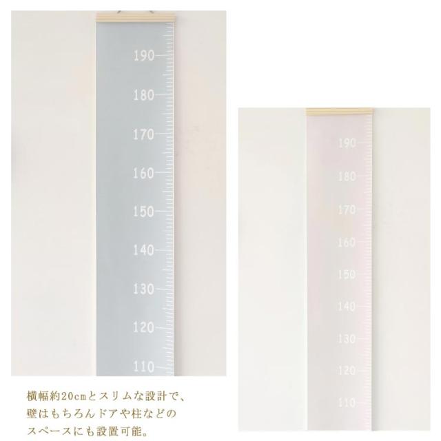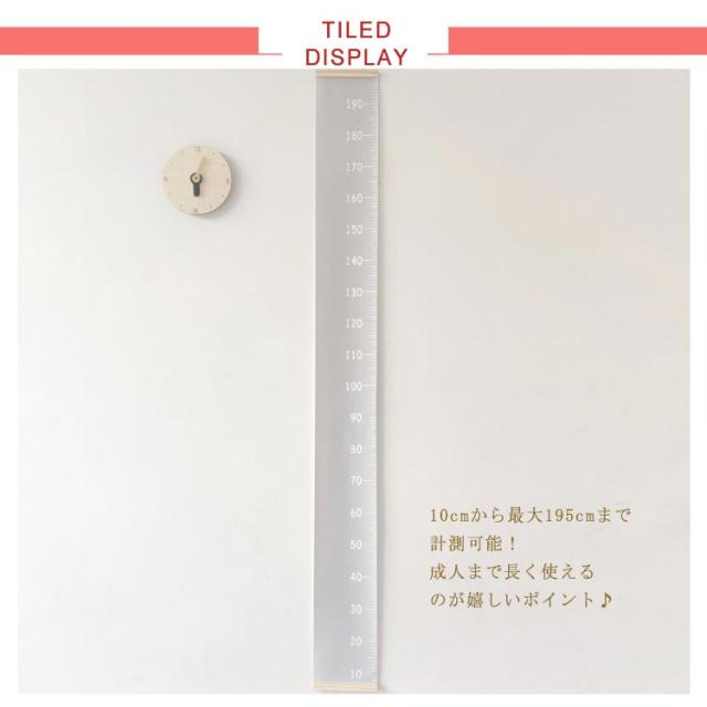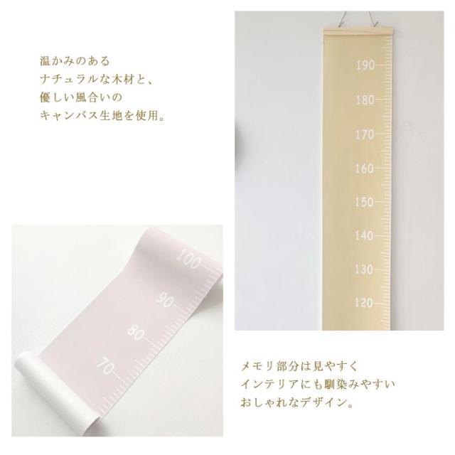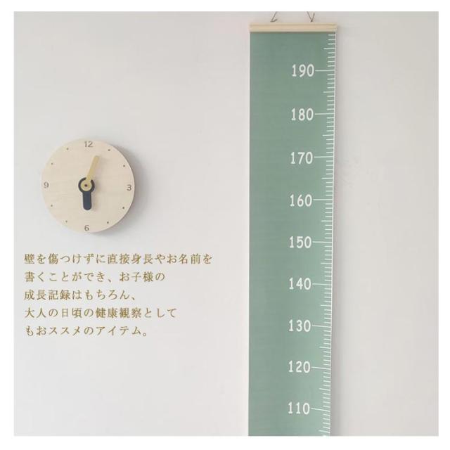 | 壁掛けタイプの身長計が登場。 10cmから最大195cmまで計測可能!成人まで長く使えるのが嬉しいポイント♪ 横幅約20cmとスリムな設計で、壁はもちろんドアや柱などのスペースにも設置可能。 温かみのあるナチュラルな木材と、優しい風合いのキャンバス生地を使用。 メモリ部分は見やすくインテリアにも馴染みやすいおしゃれなデザイン。 壁を傷つけずに直接身長やお名前を書くことができ、お子様の成長記録はもちろん、大人の日頃の健康観察としてもおススメのアイテム。 | |