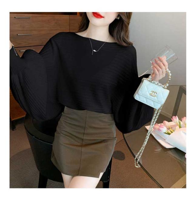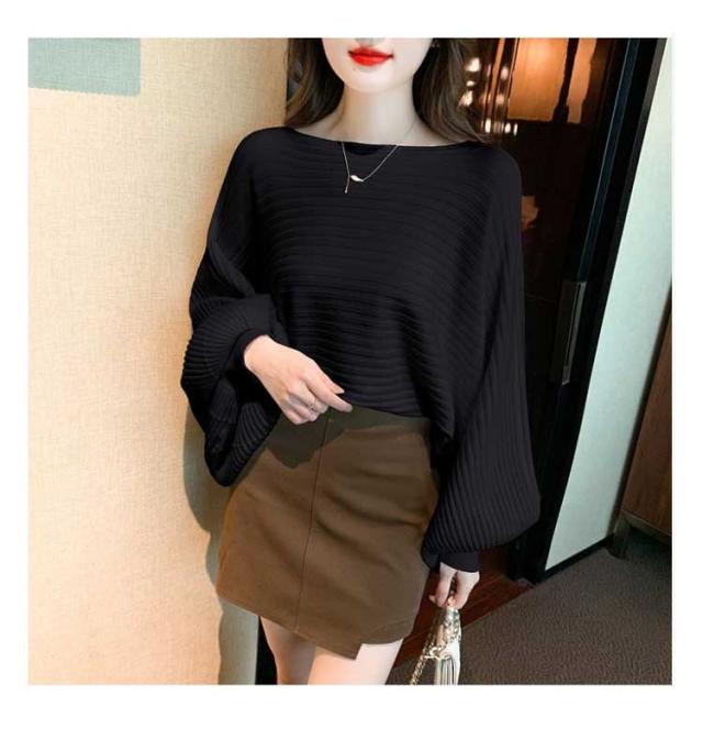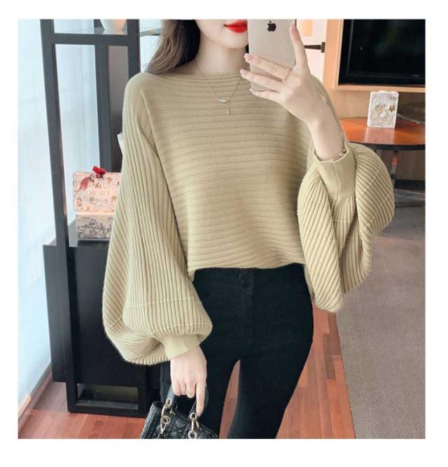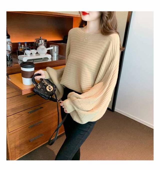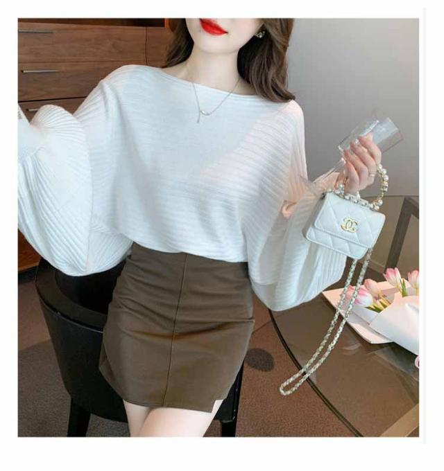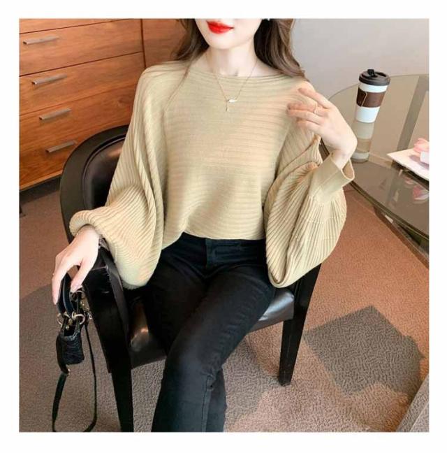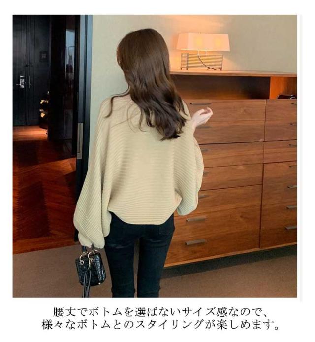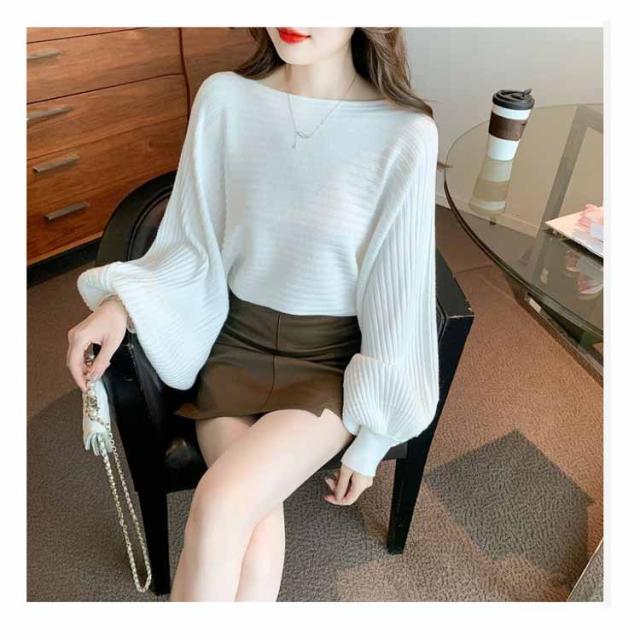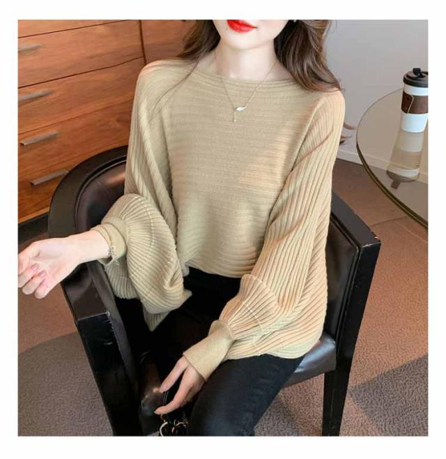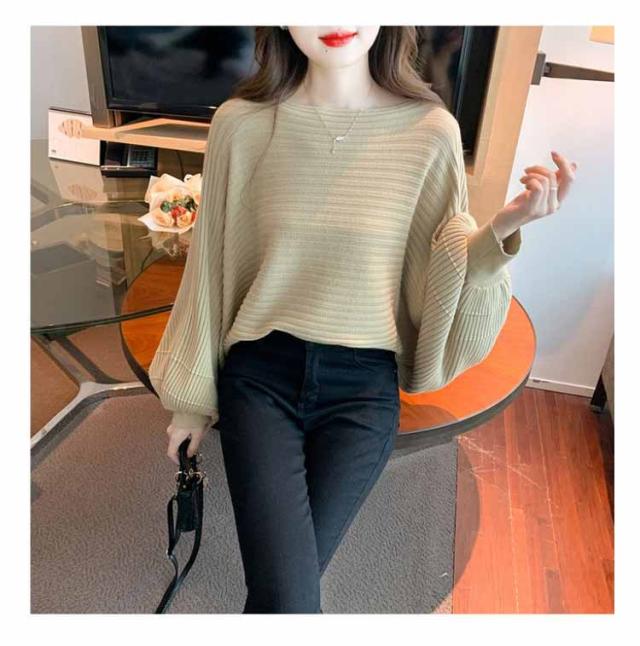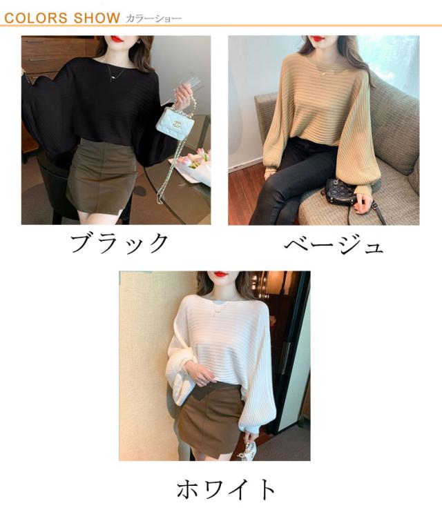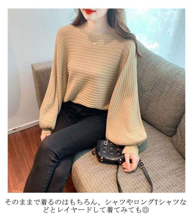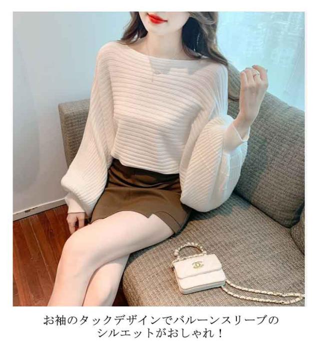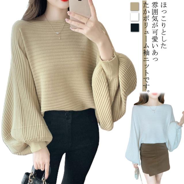 送料無料 ボリューム袖ニット レディース プルオーバー ニット セーター トップス ニットソー カットソー ぽわん袖 長袖 ボートネック バルーン袖 リブニット ゆったり きれいめ 大人 レイヤード 無地 リブ 柔らか