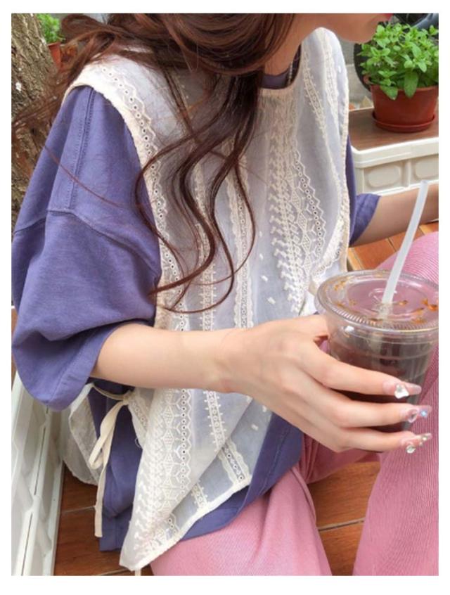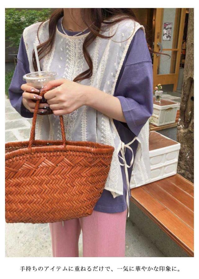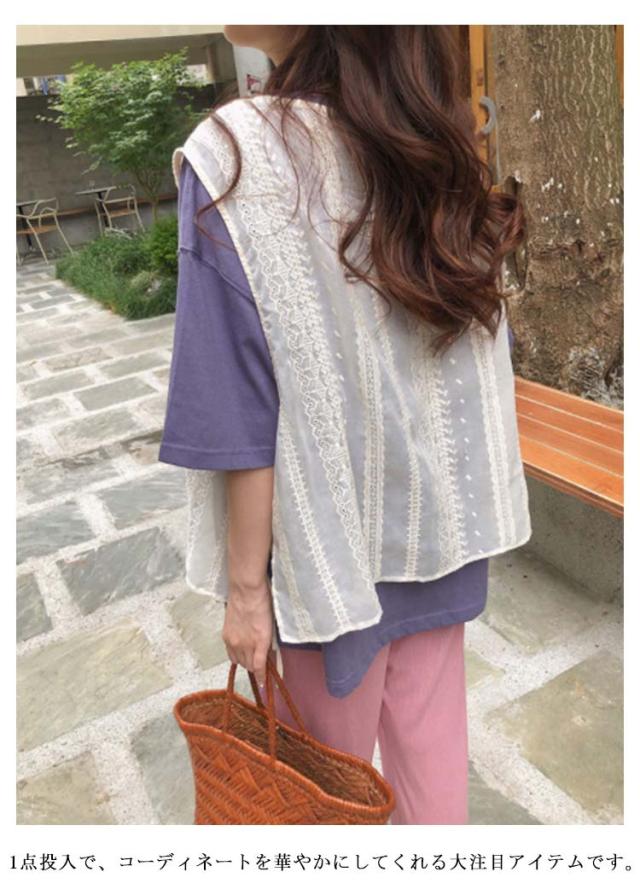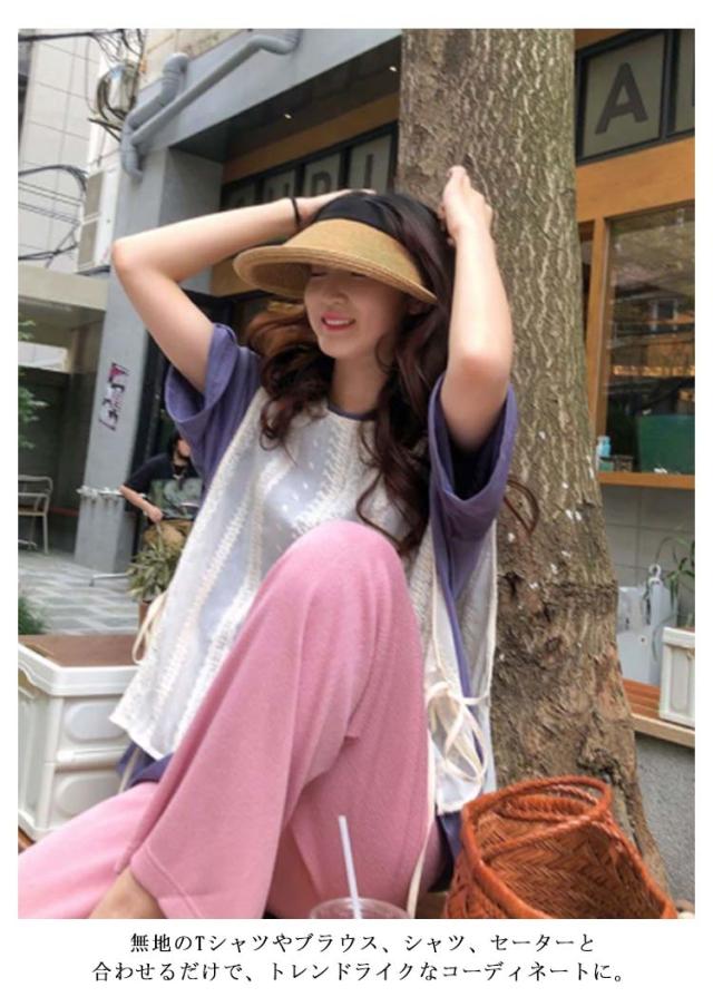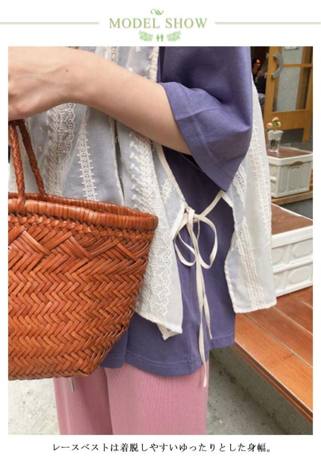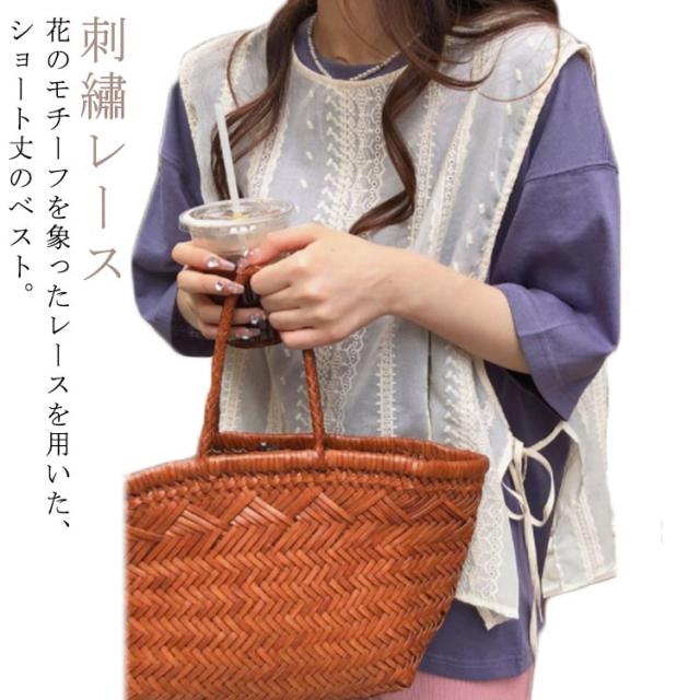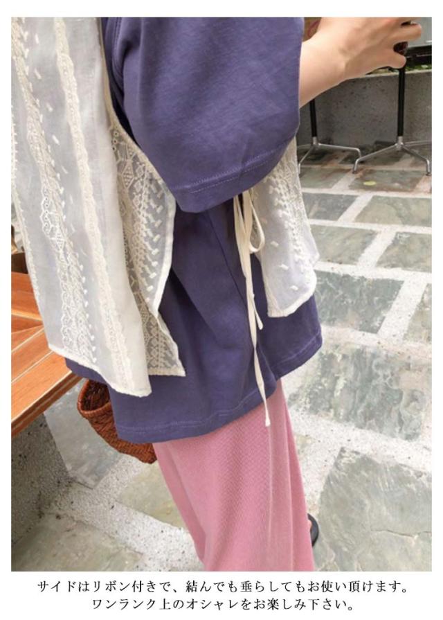 送料無料 レースベスト トップス ベスト レースベスト サイドリボン 刺?レース フリル レイヤード 重ね着 ノースリーブ サイドスリット トップス モノトーン きれいめ ショート丈 ゆったり きれいめ 大人 トップス